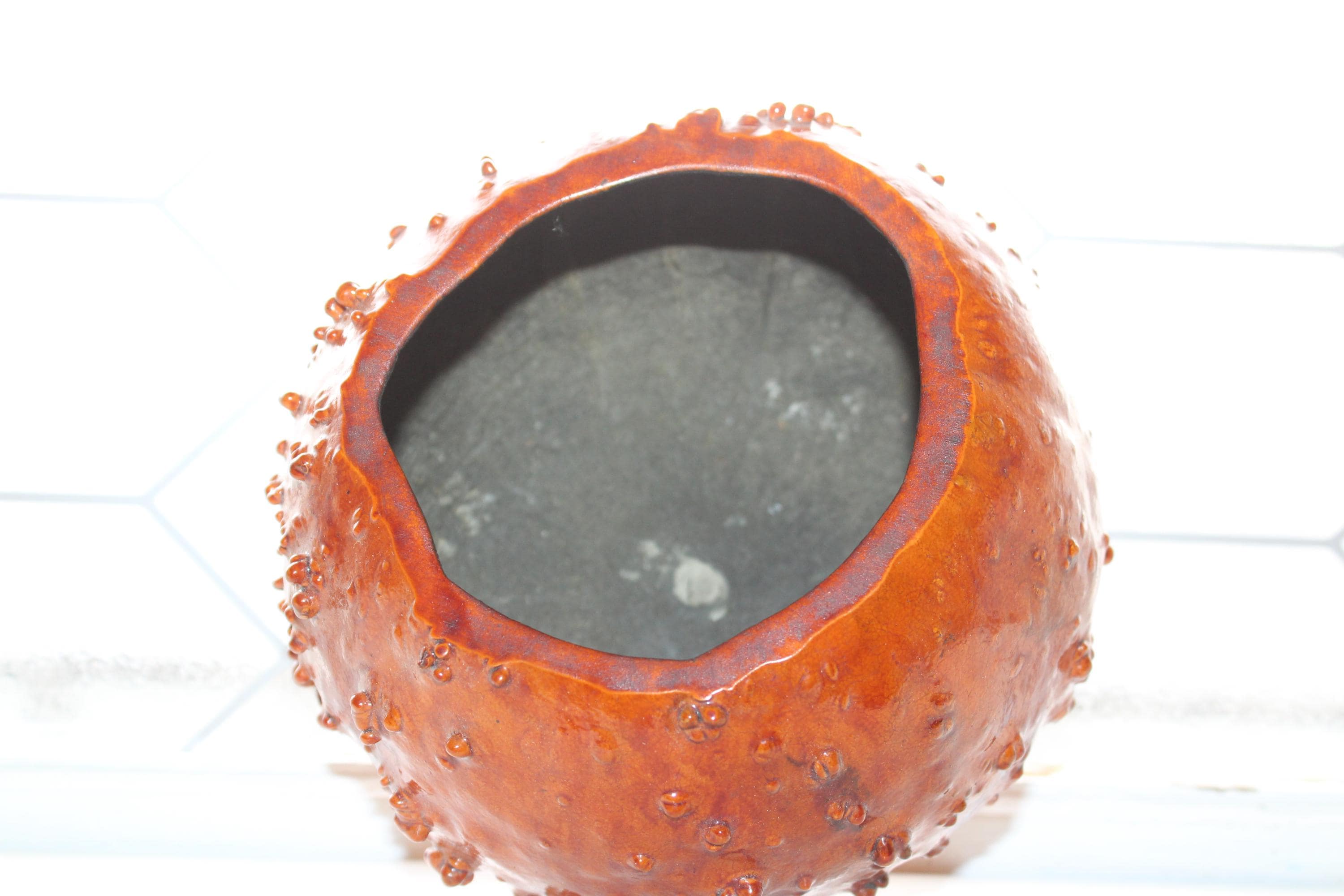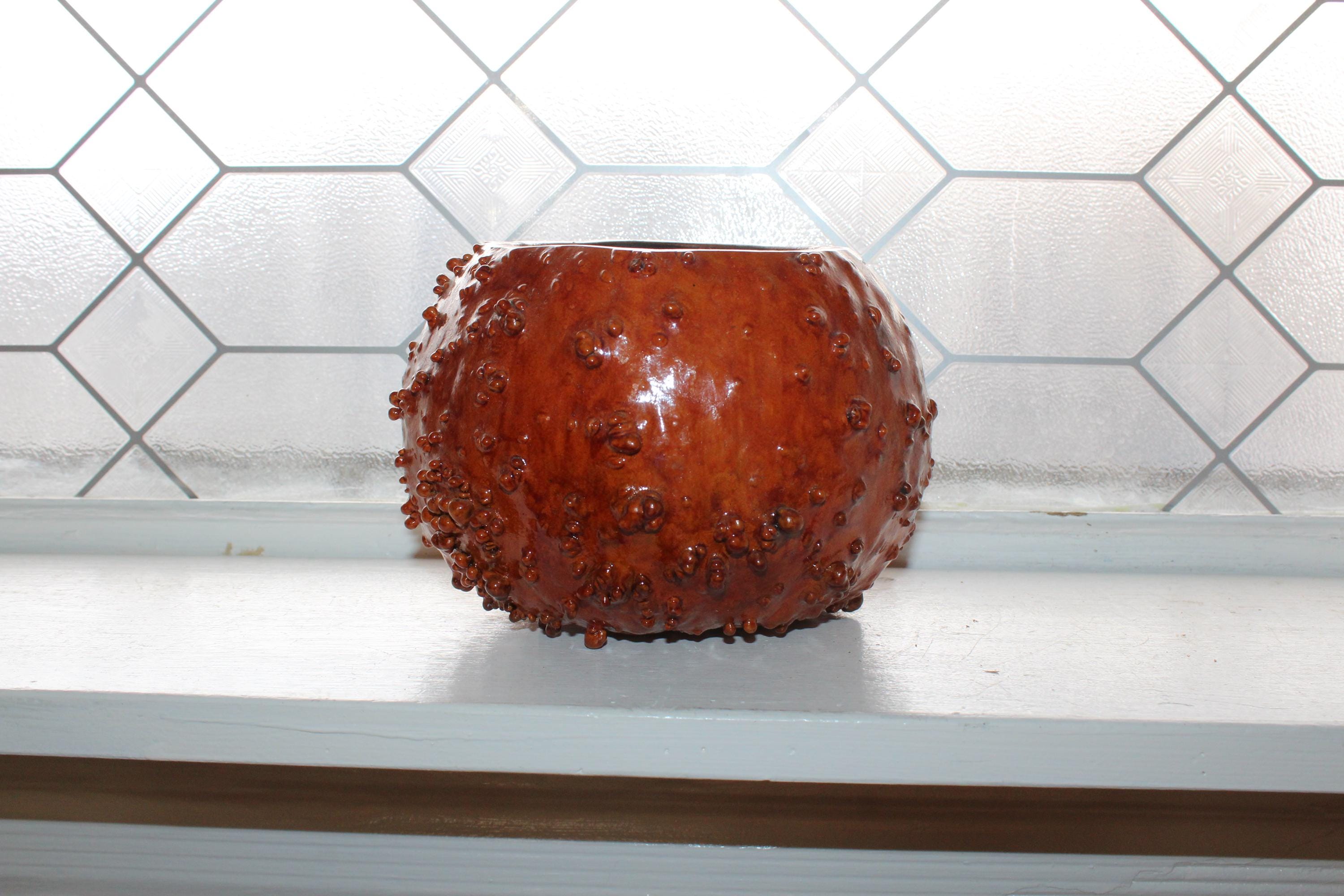 This is a vintage knobby gourd bowl or planter, in excellent condition. It measures 7" wide x 5" high. Perfect for use or display. Enjoy!
