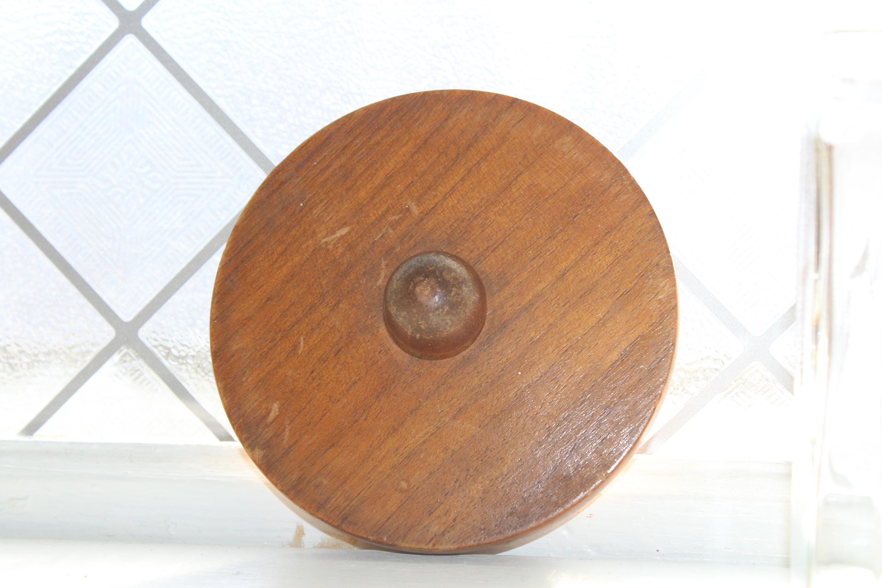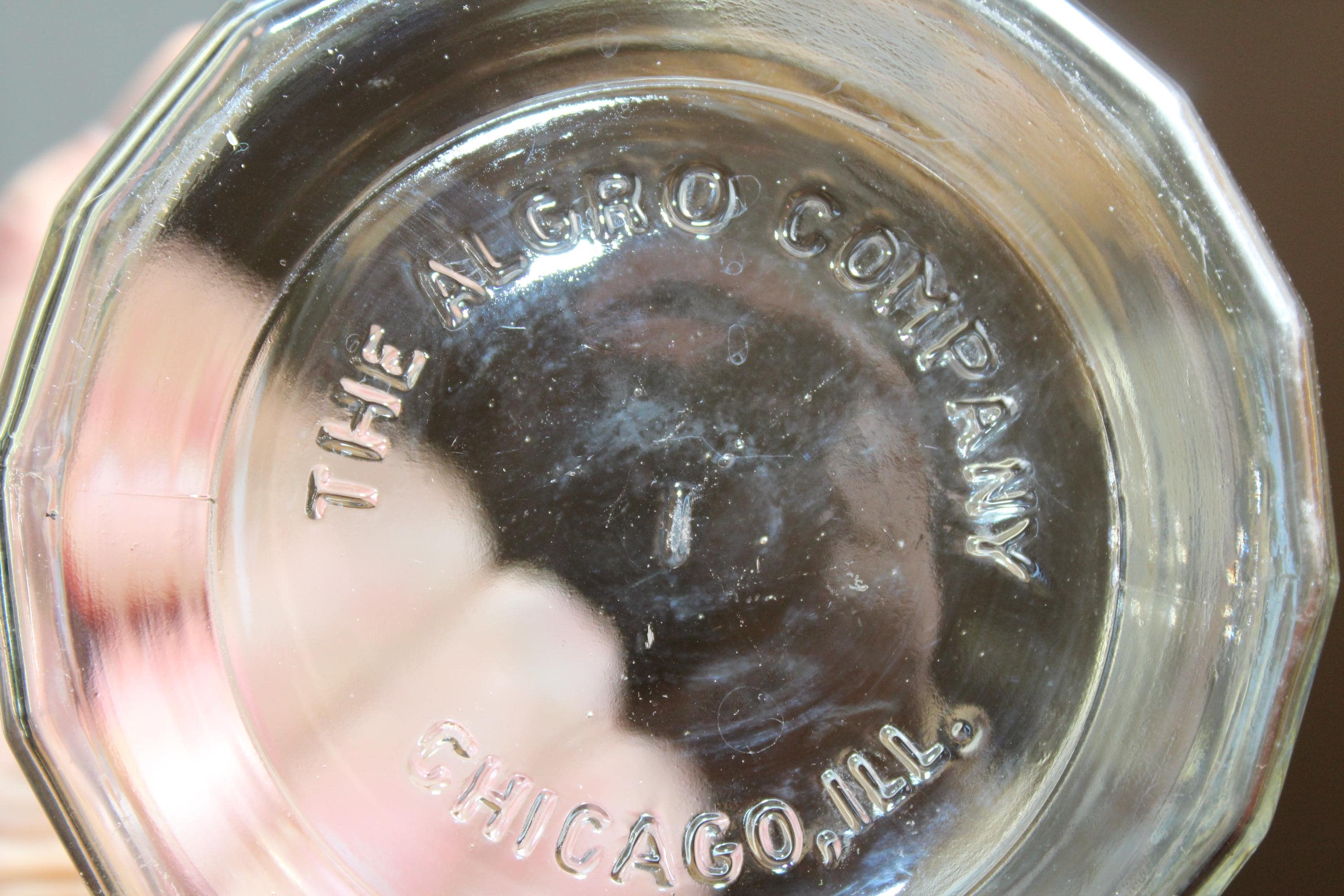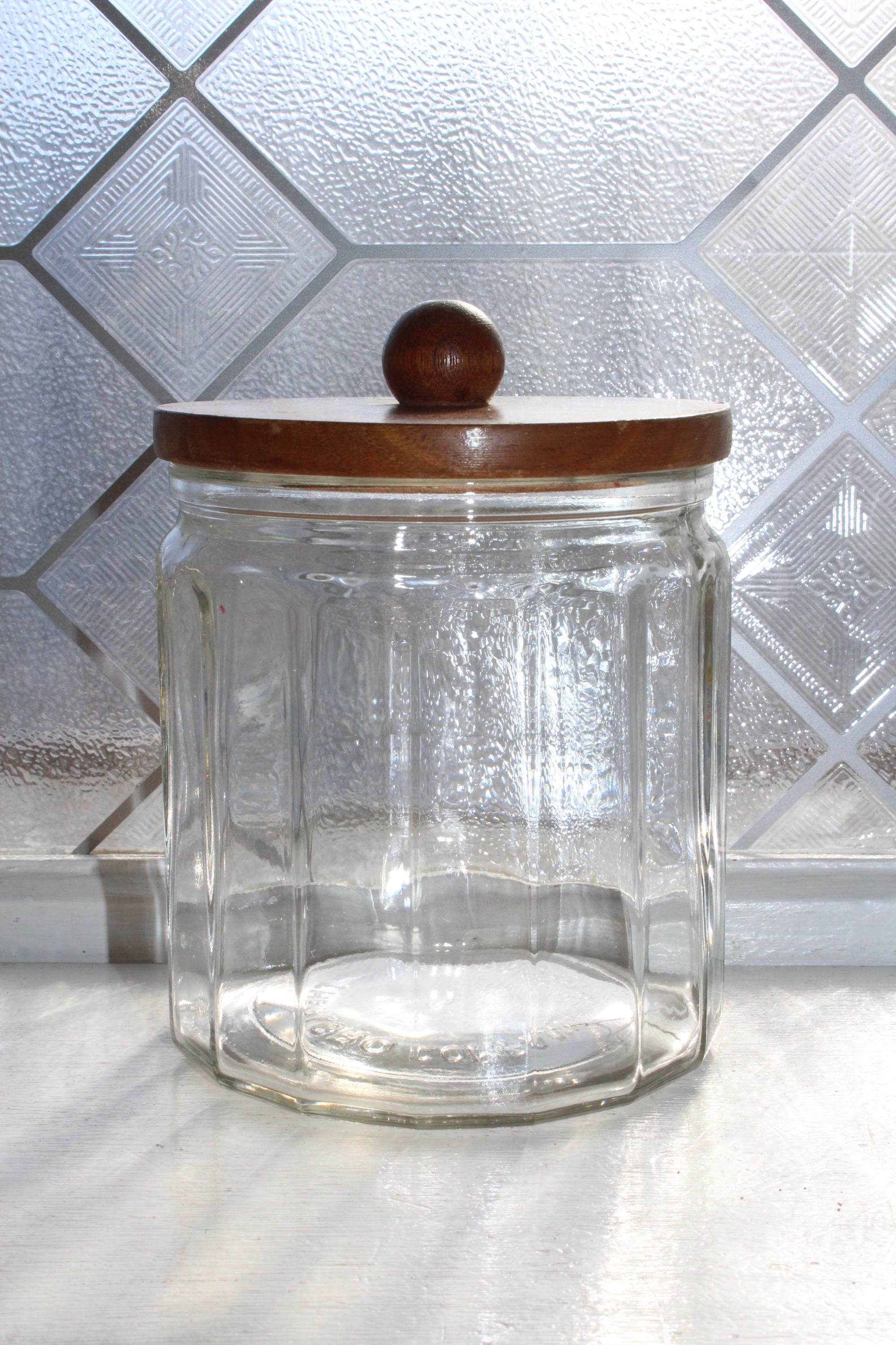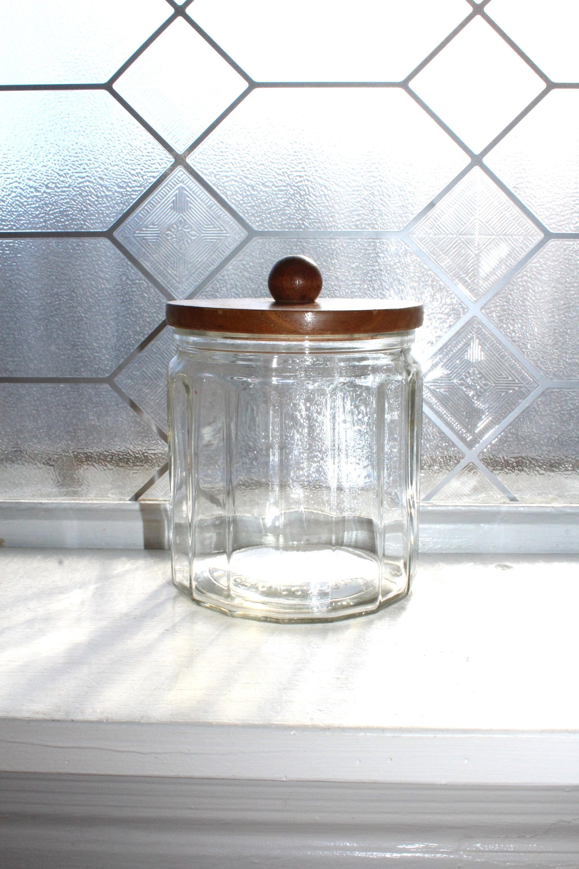 Vintage The Algro Company paneled glass tobacco humidor jar, in excellent condition with the original wood lid. It measures 5" high x 4" wide and has no chips or cracks, perfect for display. Enjoy!