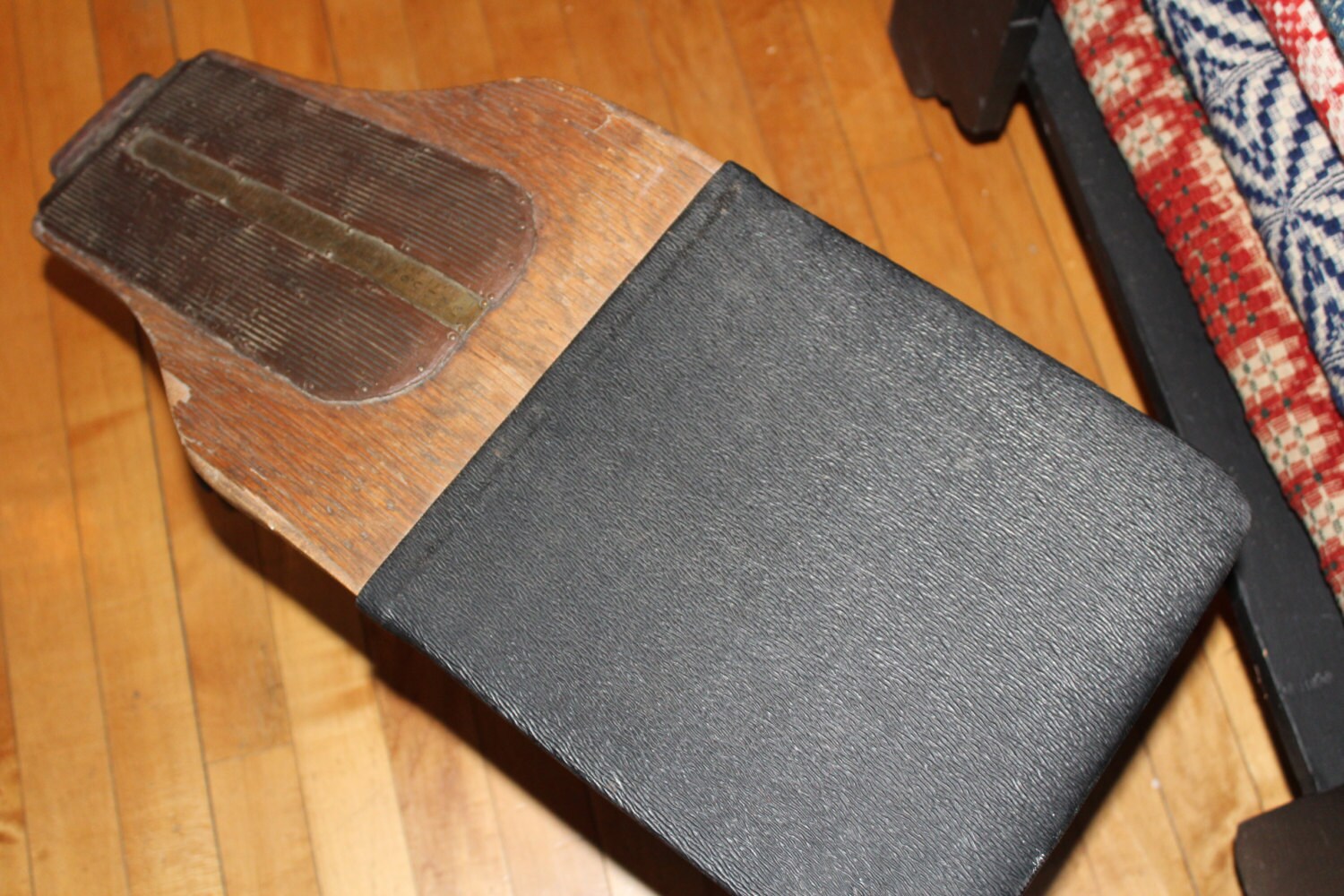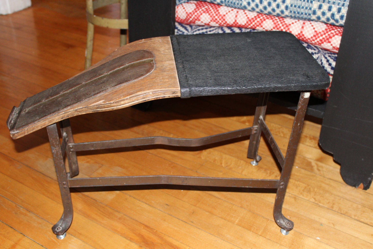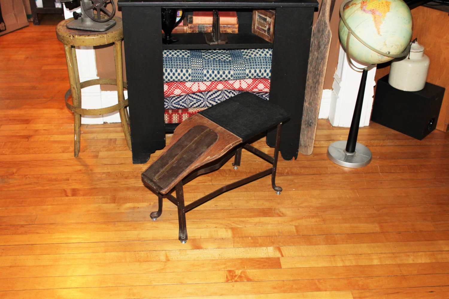 Antique early 1900s shoe fitting stool or bench, from an old general store in Fargo, North Dakota, in very good condition. The stool is made of wood and metal, and measures 24" long x 10" wide x 15" high. It is marked Royal Chicago Products. The stool displays very well and is quite sturdy. Enjoy!