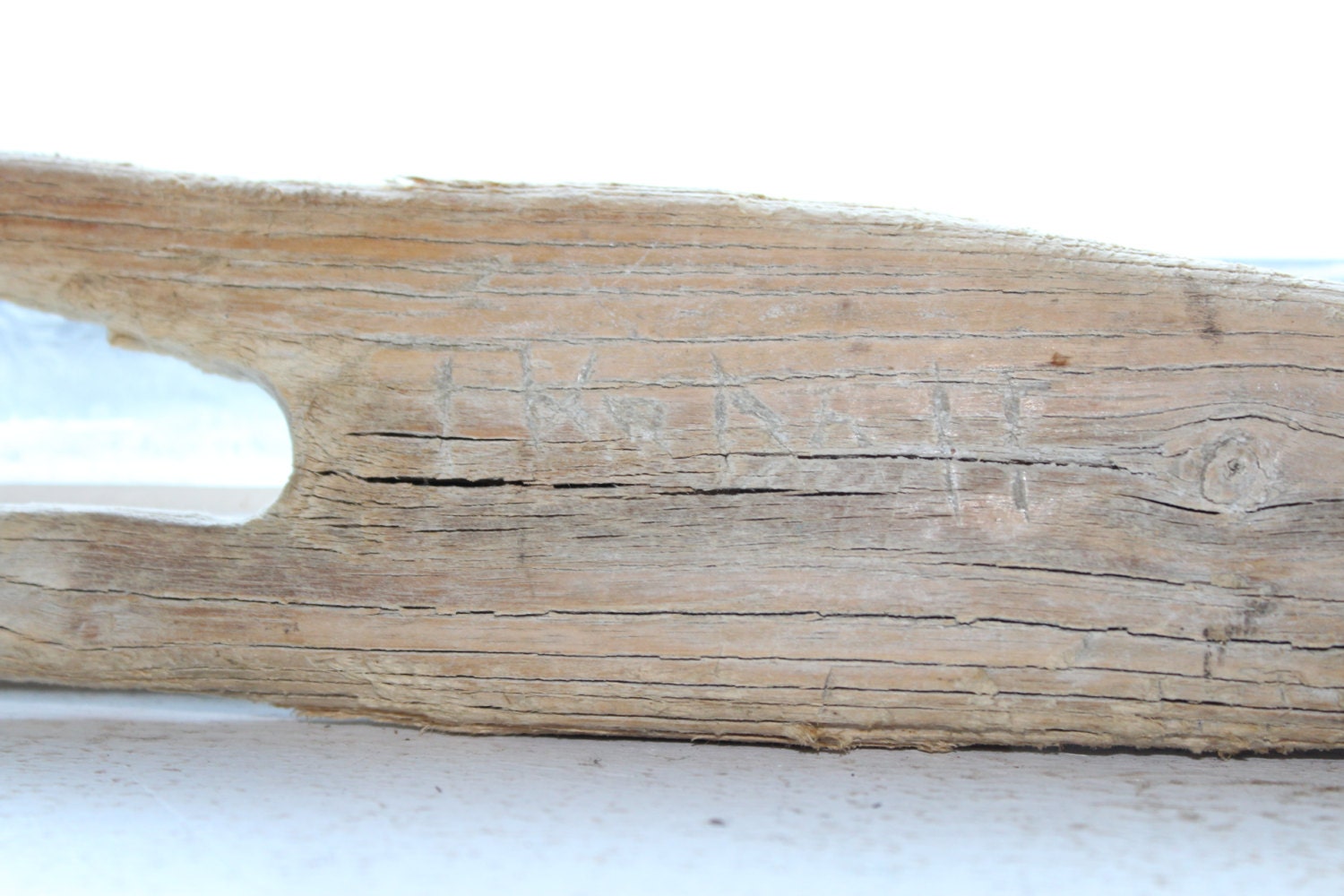 Circa late 1800s antique wood laundry stick, hand carved and in good condition. These were used to swirl the laundry in a tub in the 19th and early 20th centuries. This one measures 18" long and has the original owner's name carved into the handle. The handle is worn smooth from years of use. I purchased it an a farm estate auction in western Minnesota. Enjoy!