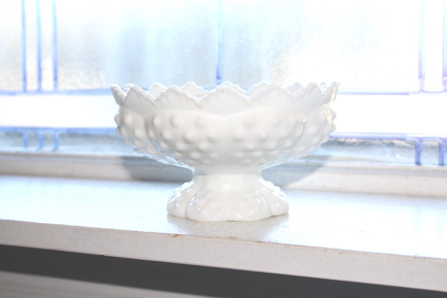 Vintage milk glass hobnail candle holder, in excellent condition. Marked on the underside Pat No. 3547569. It measures 6 1/2" wide x 3 3/4" high, holds 6 candlesticks and has no chips or cracks, perfect for use or display. Enjoy!
