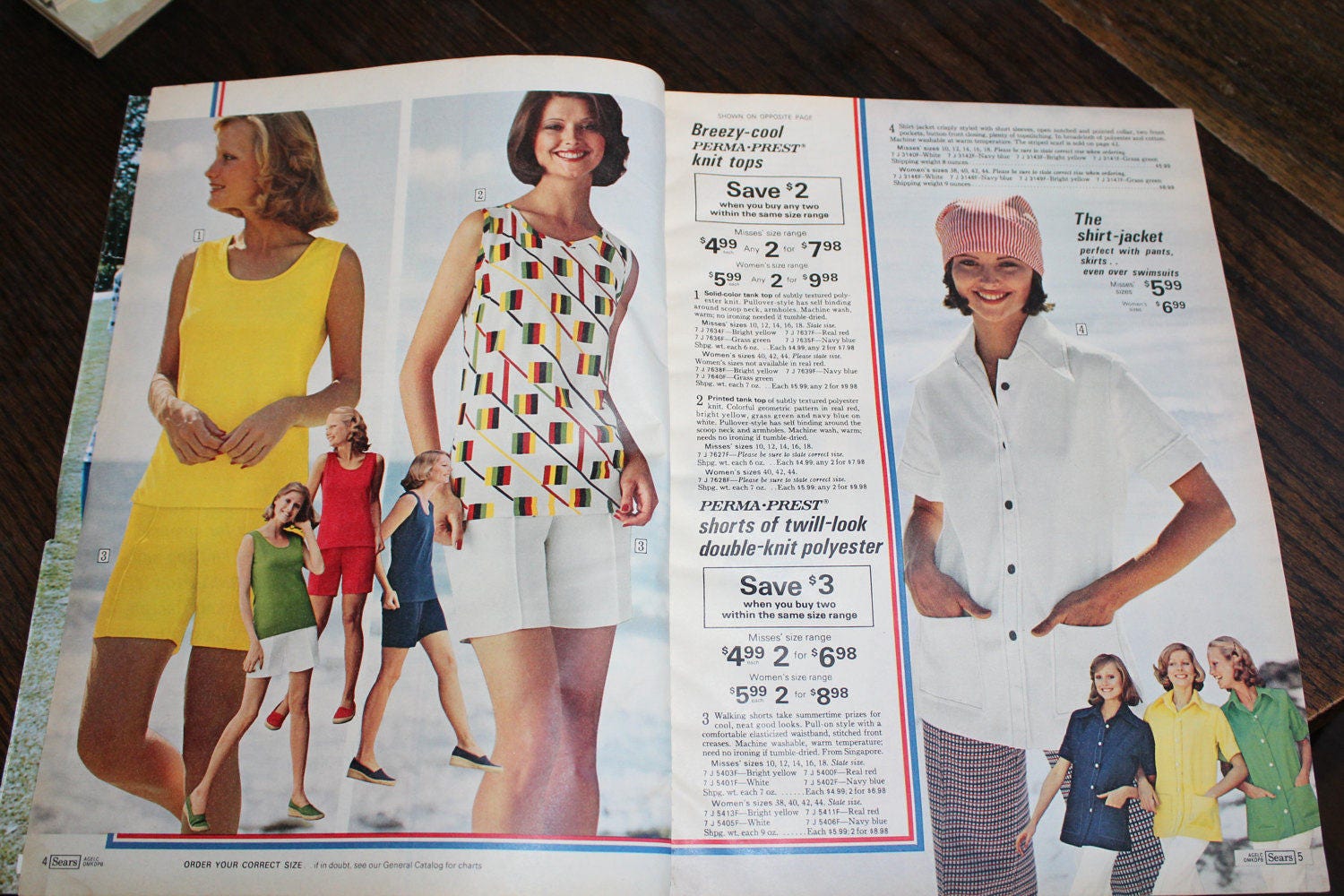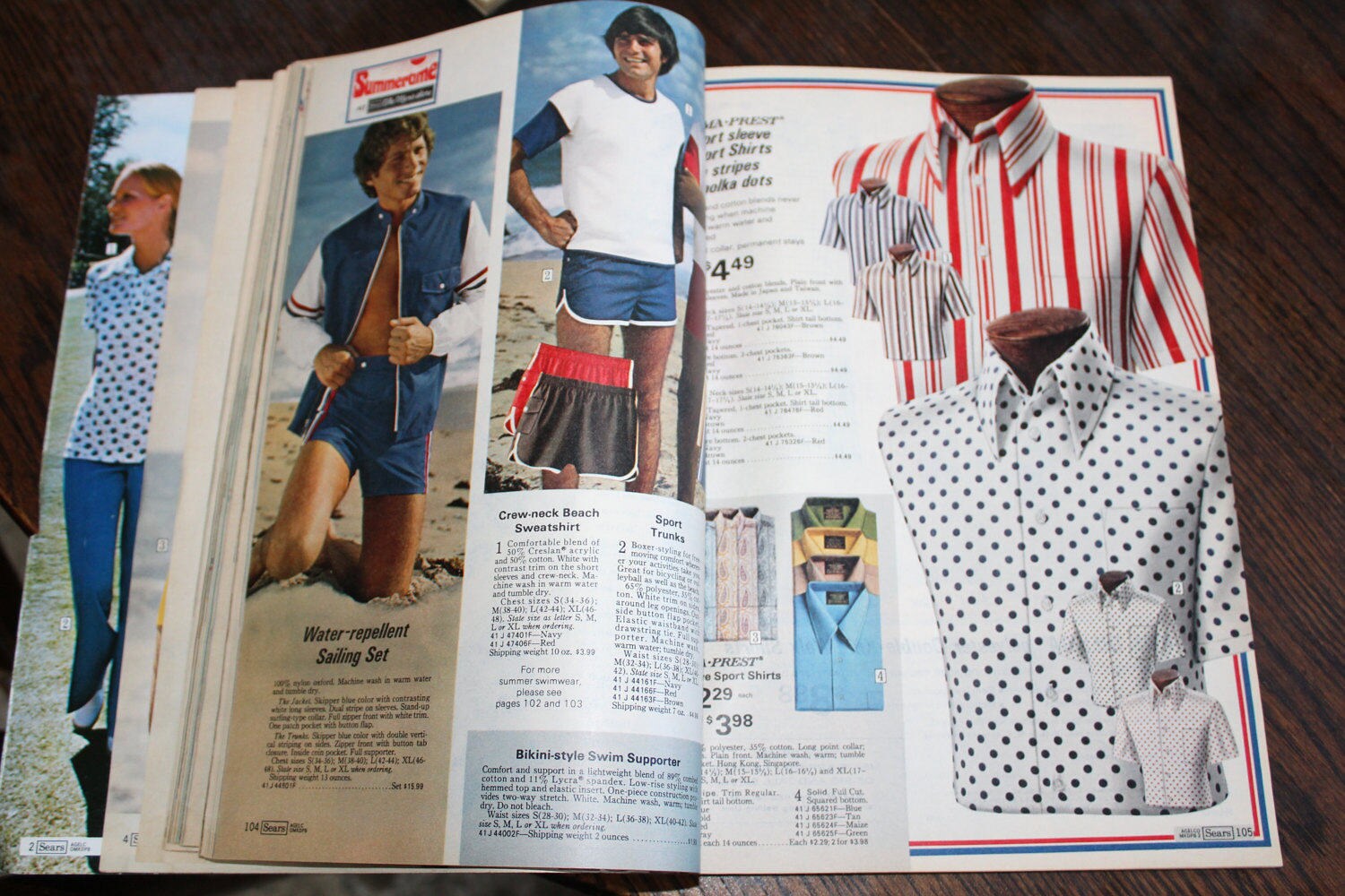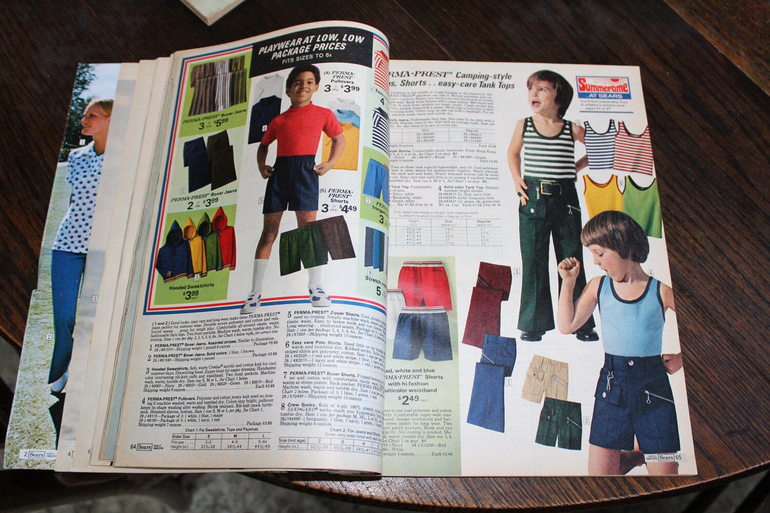 Vintage 1974 Sears Summer catalog. Filled with retro styles from back in the day, from women's, men's and children's clothes to furniture, home decor and so much more. The pages are intact and good. Enjoy!