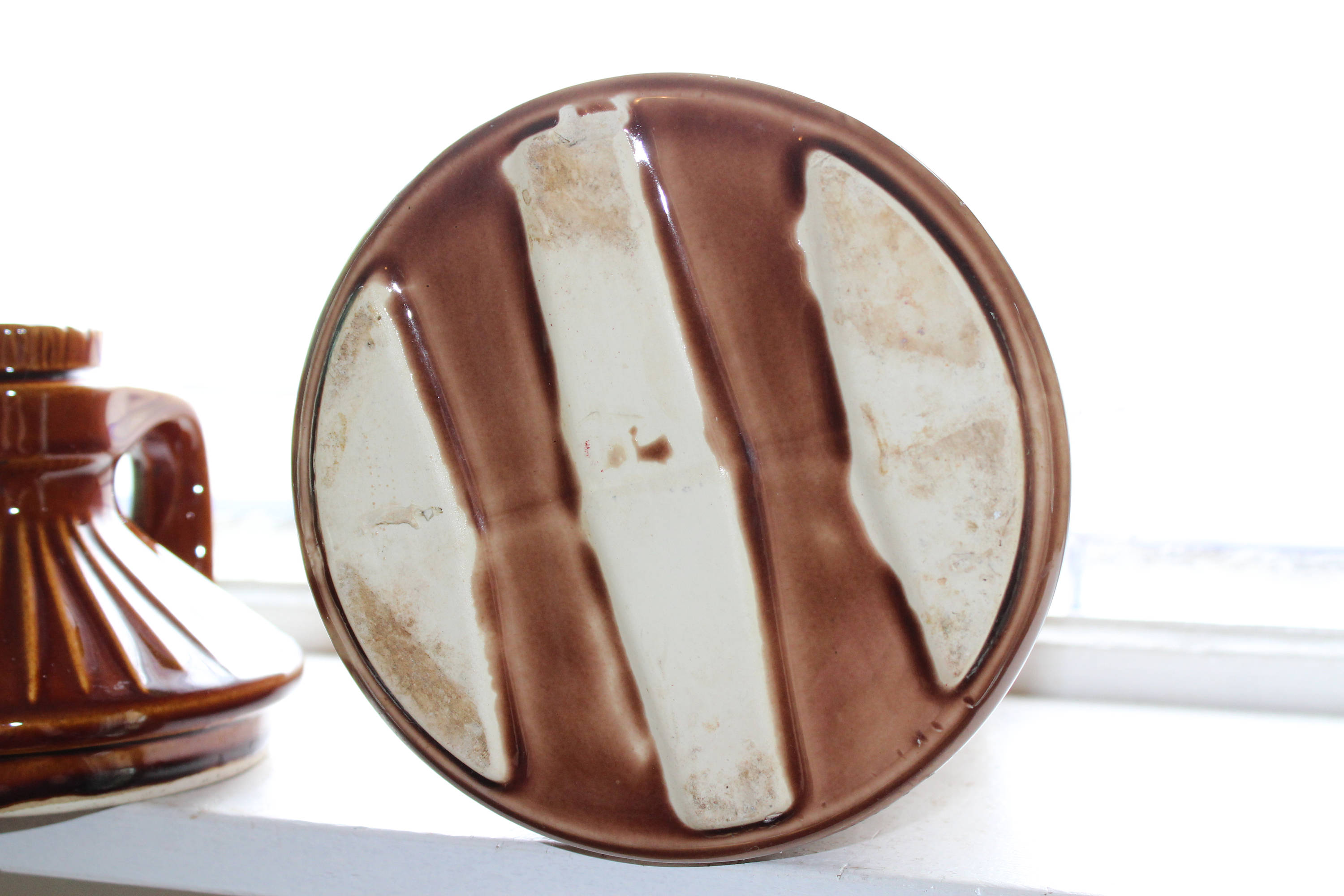 Vintage McCoy Pottery cookie jug jar, great for use and display in a retro kitchen. The jar measures 11" high and weighs just under 5 lbs. Enjoy!