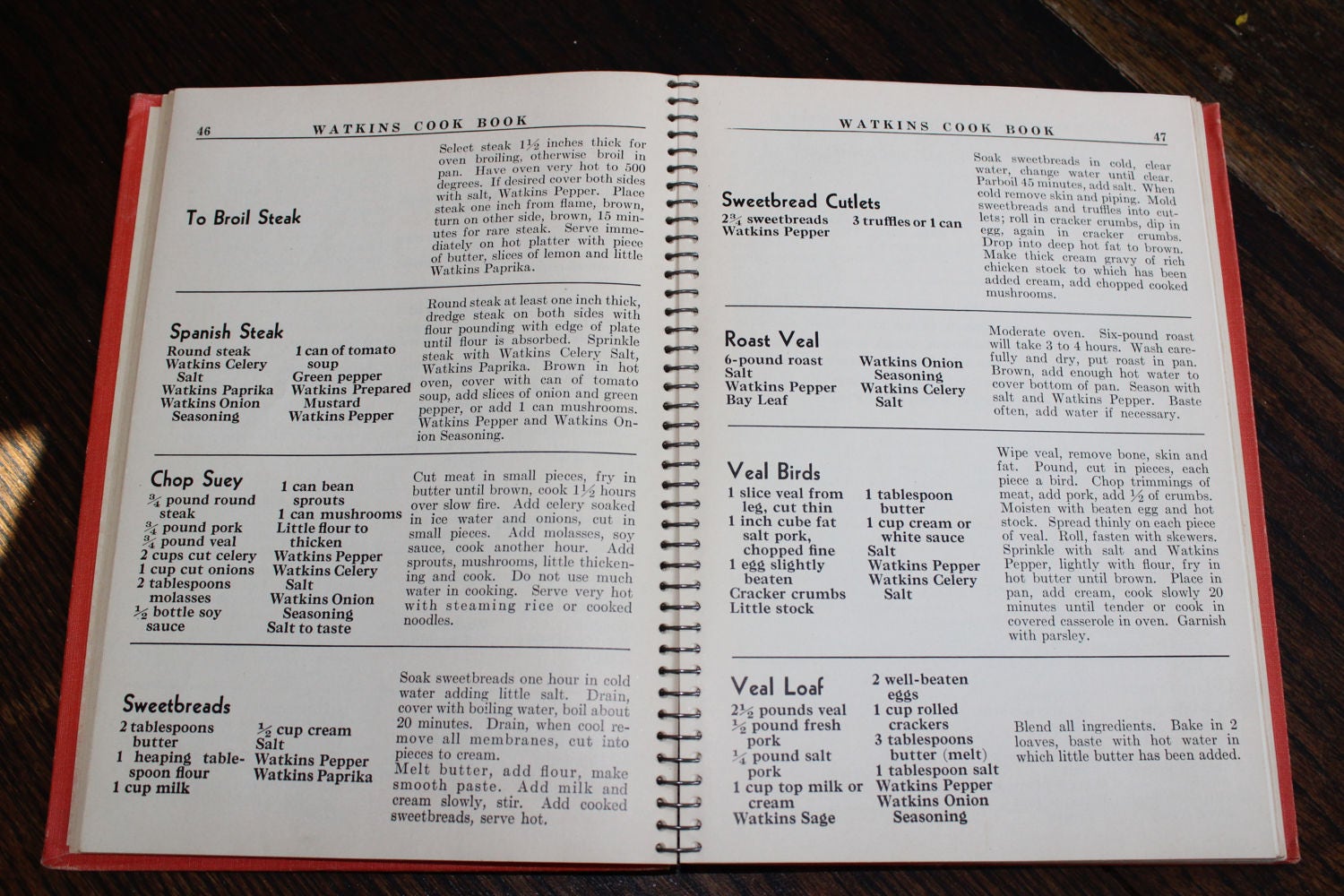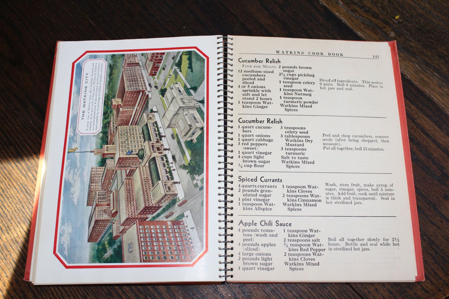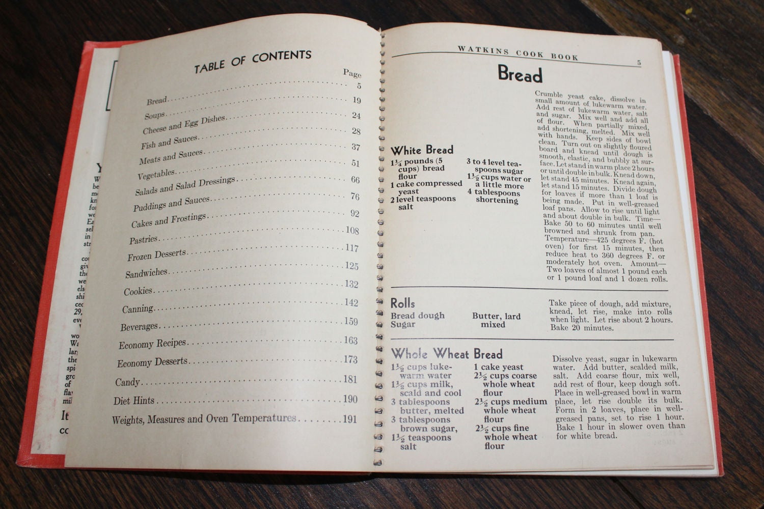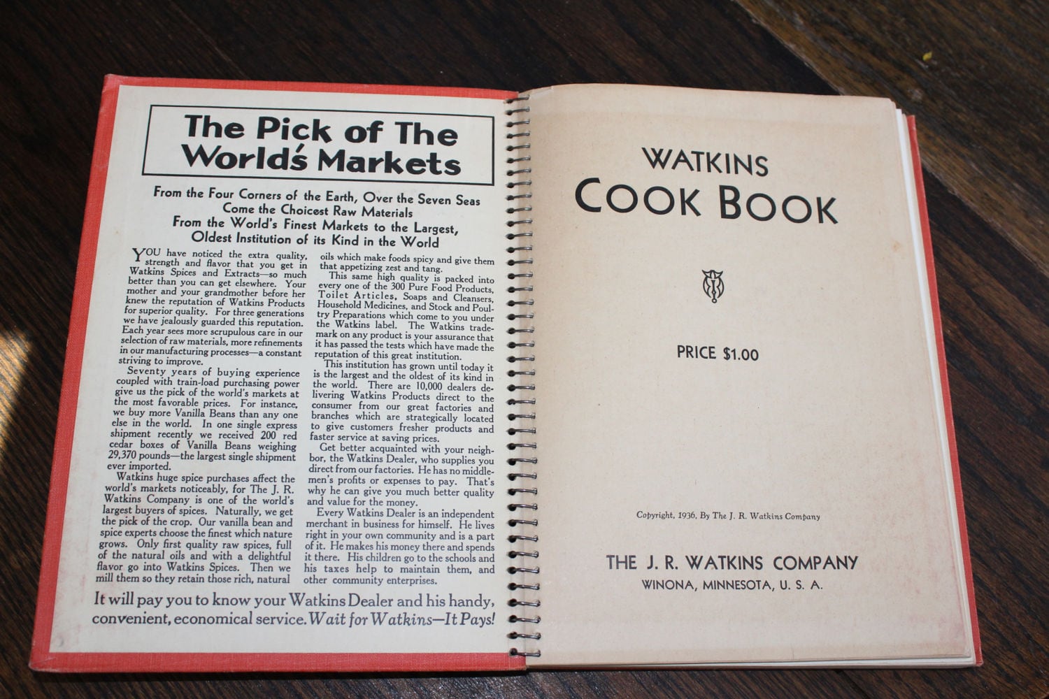 Vintage 1936 Watkins cookbook. This cookbook has 192 pages. It measures 8 1/8" x 6". In good condition. Enjoy!