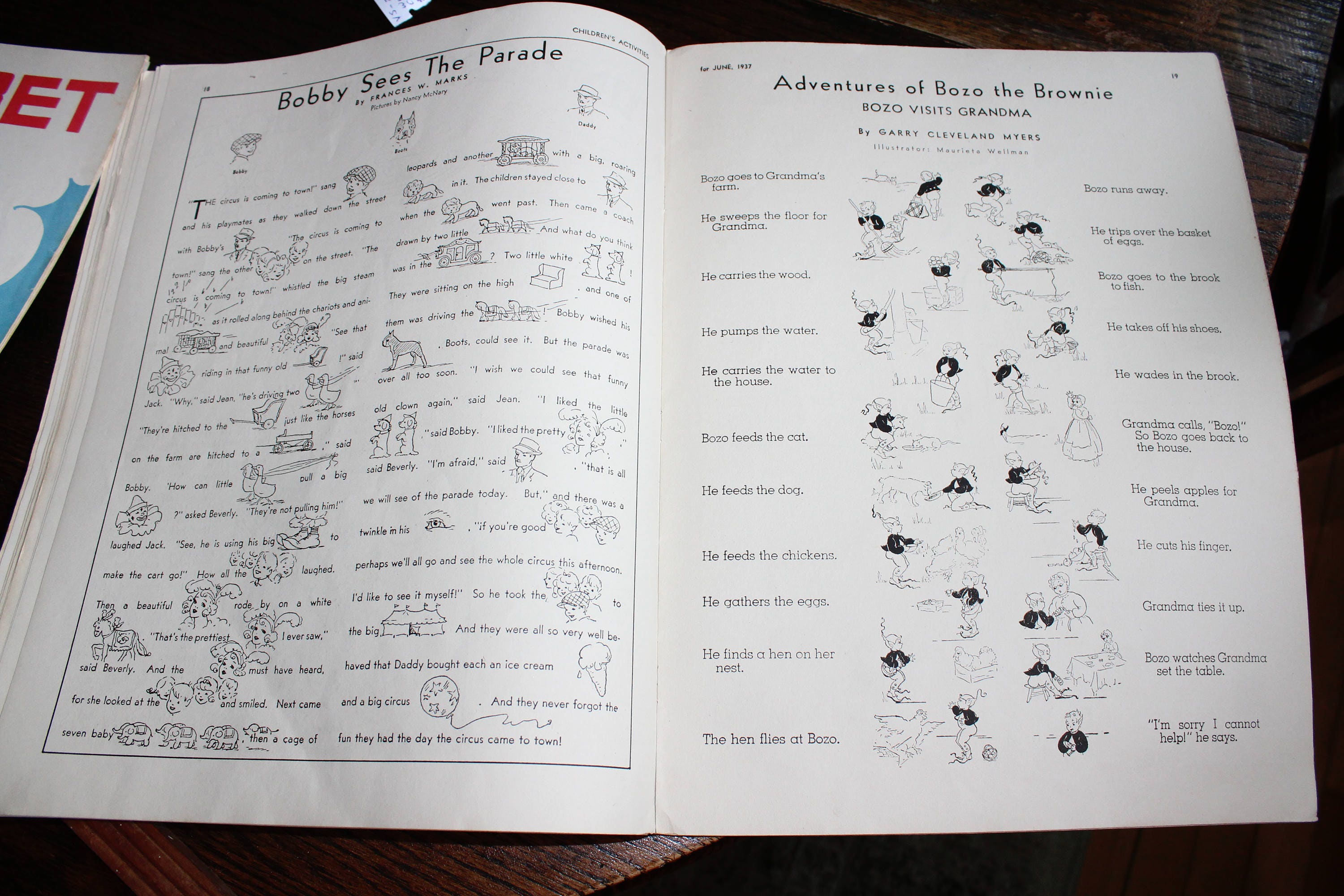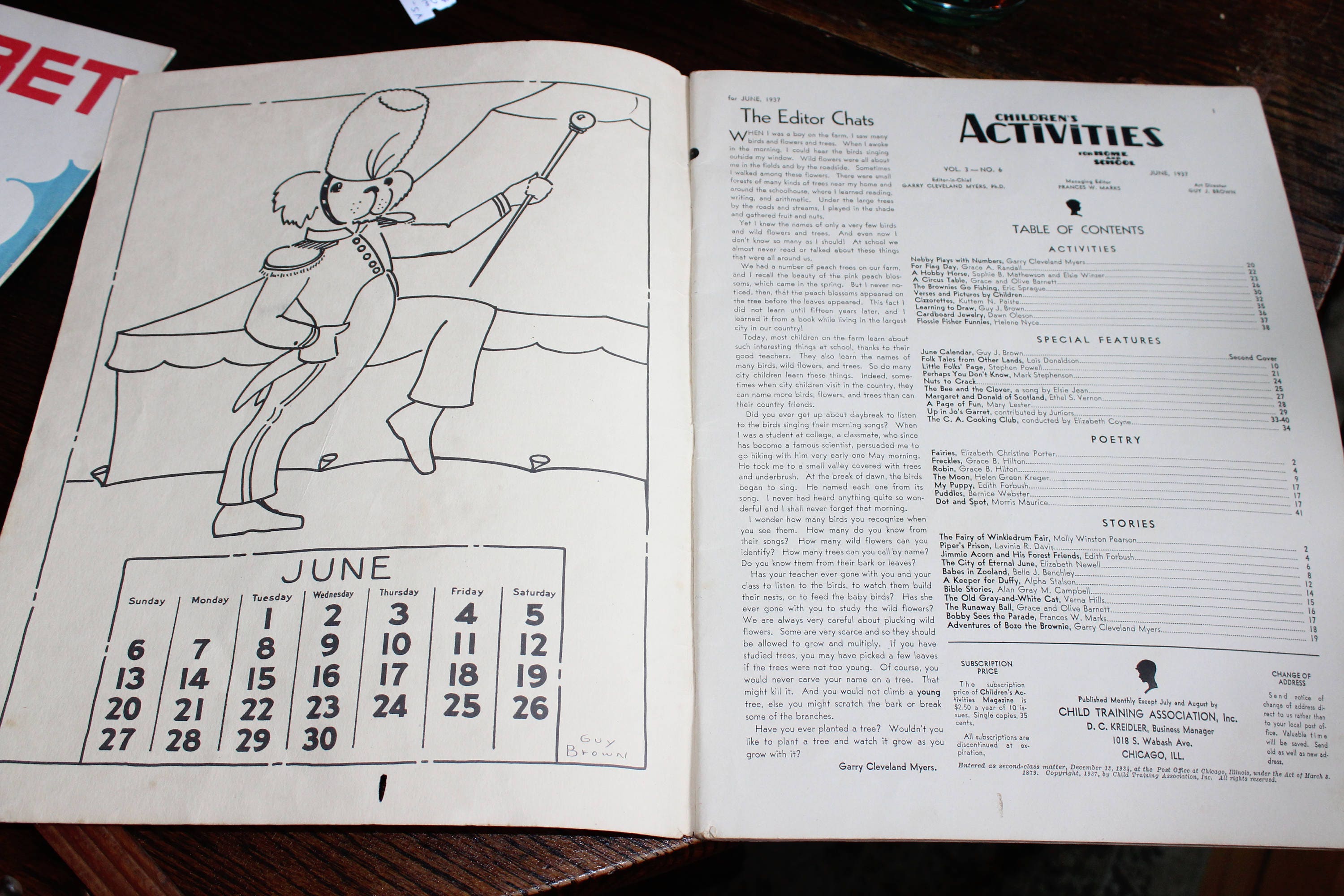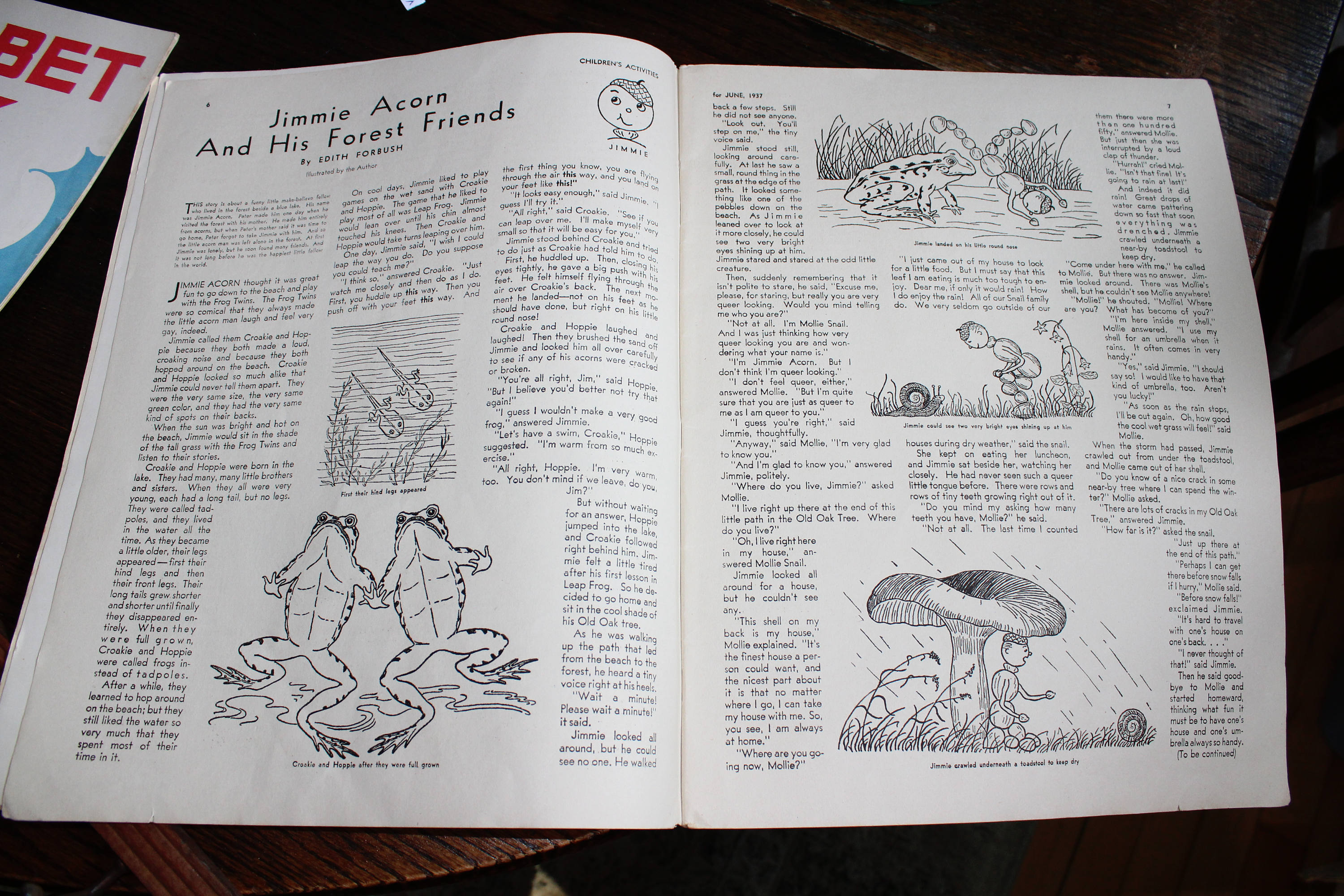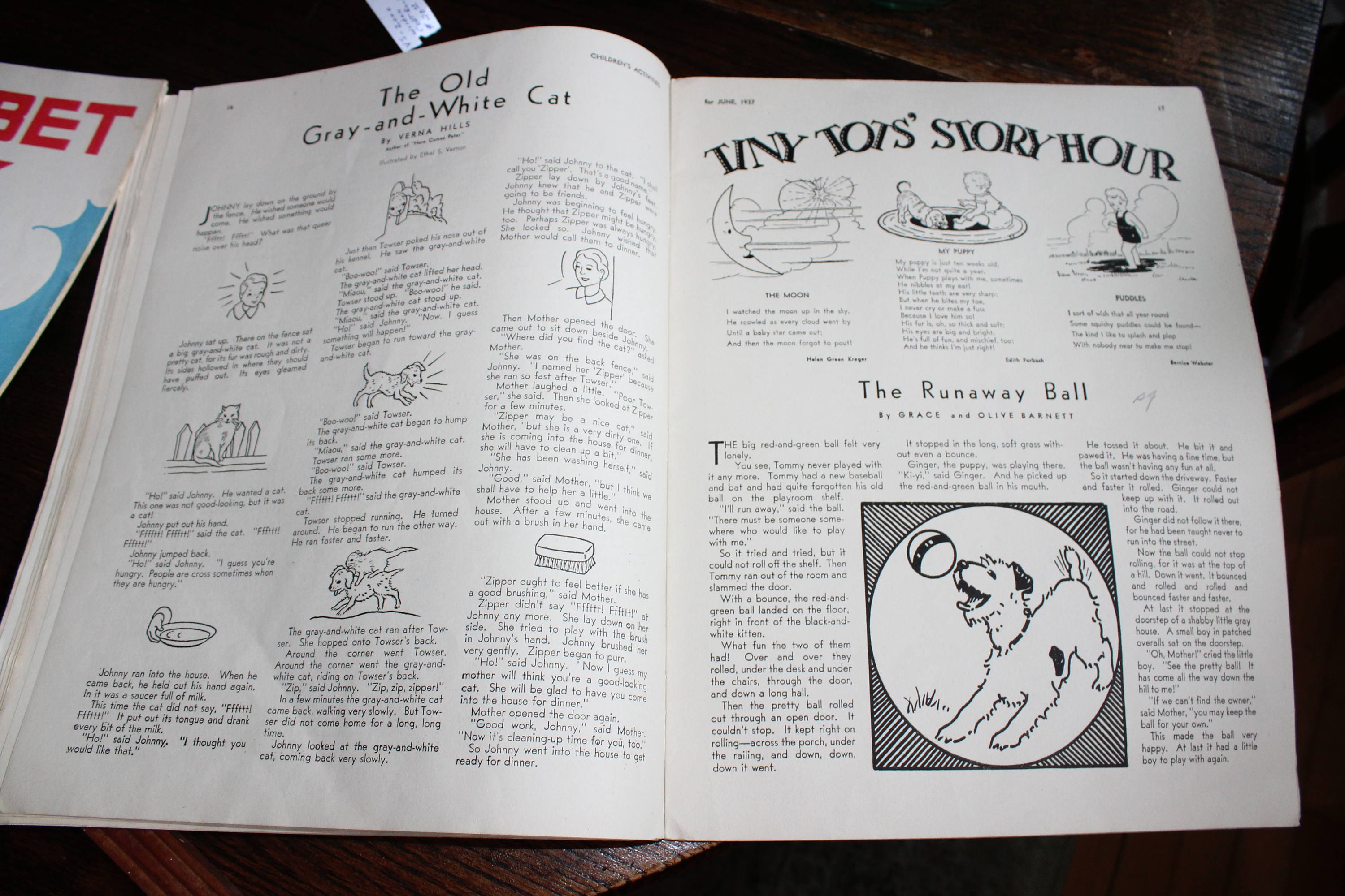 Vintage 1937 children's activities book, in good condition. The book measures 13 3/4" x 10 1/2" and has 40 pages of stories, crafts, activities and more. Enjoy!