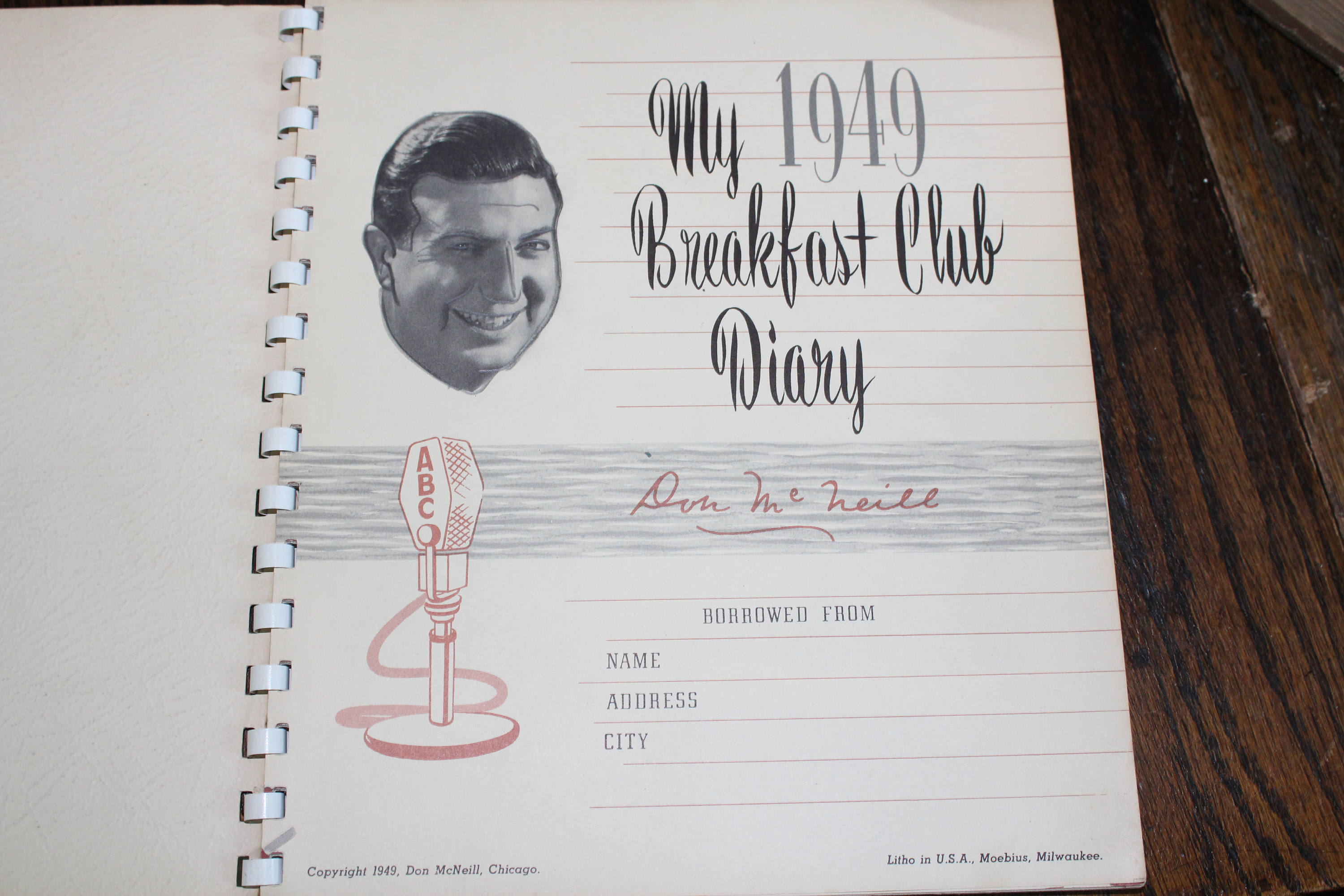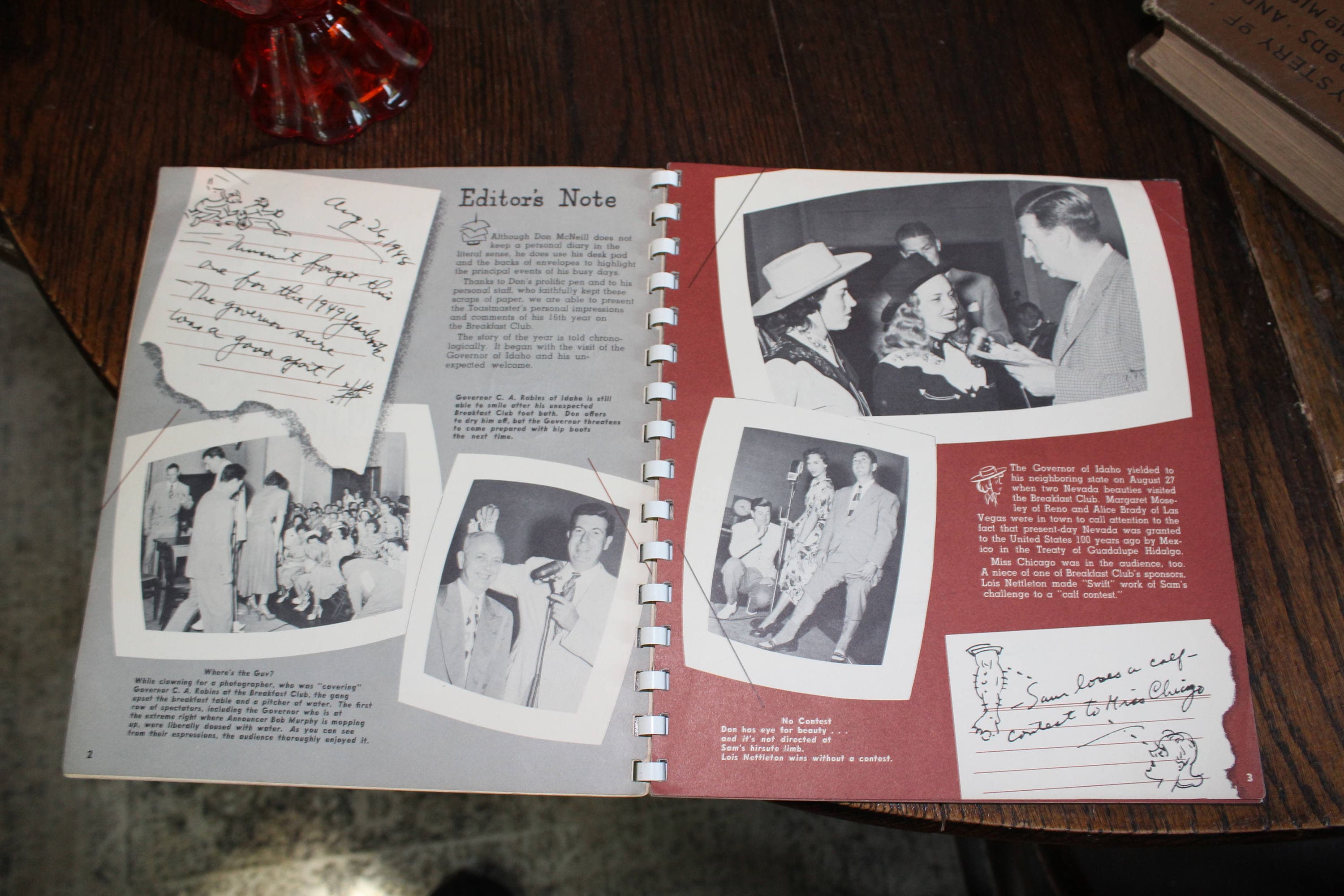 Vintage 1949 book, Don's Diary, The Breakfast Club 1949 Yearbook, by Don McNeill. The book measures 9" x 8" and has 63 pages with photos illustrations. The book is in good condition and displays well. Enjoy!