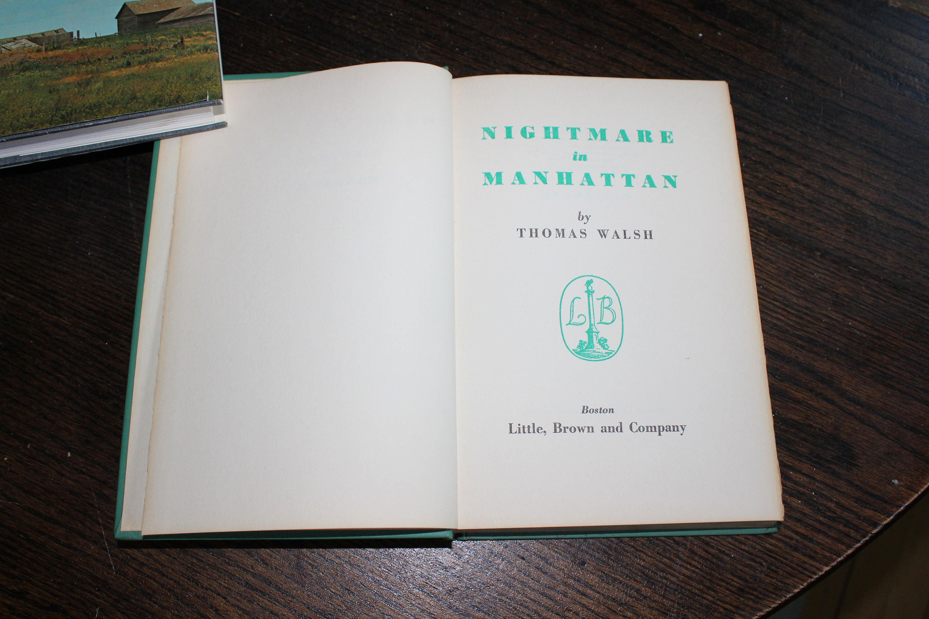 Vintage 1950 book, Nightmare In Manhattan by Thomas Walsh, in good condition. The book measures 8 1/2" x 5 1/2" and has 218 pages. Enjoy!
