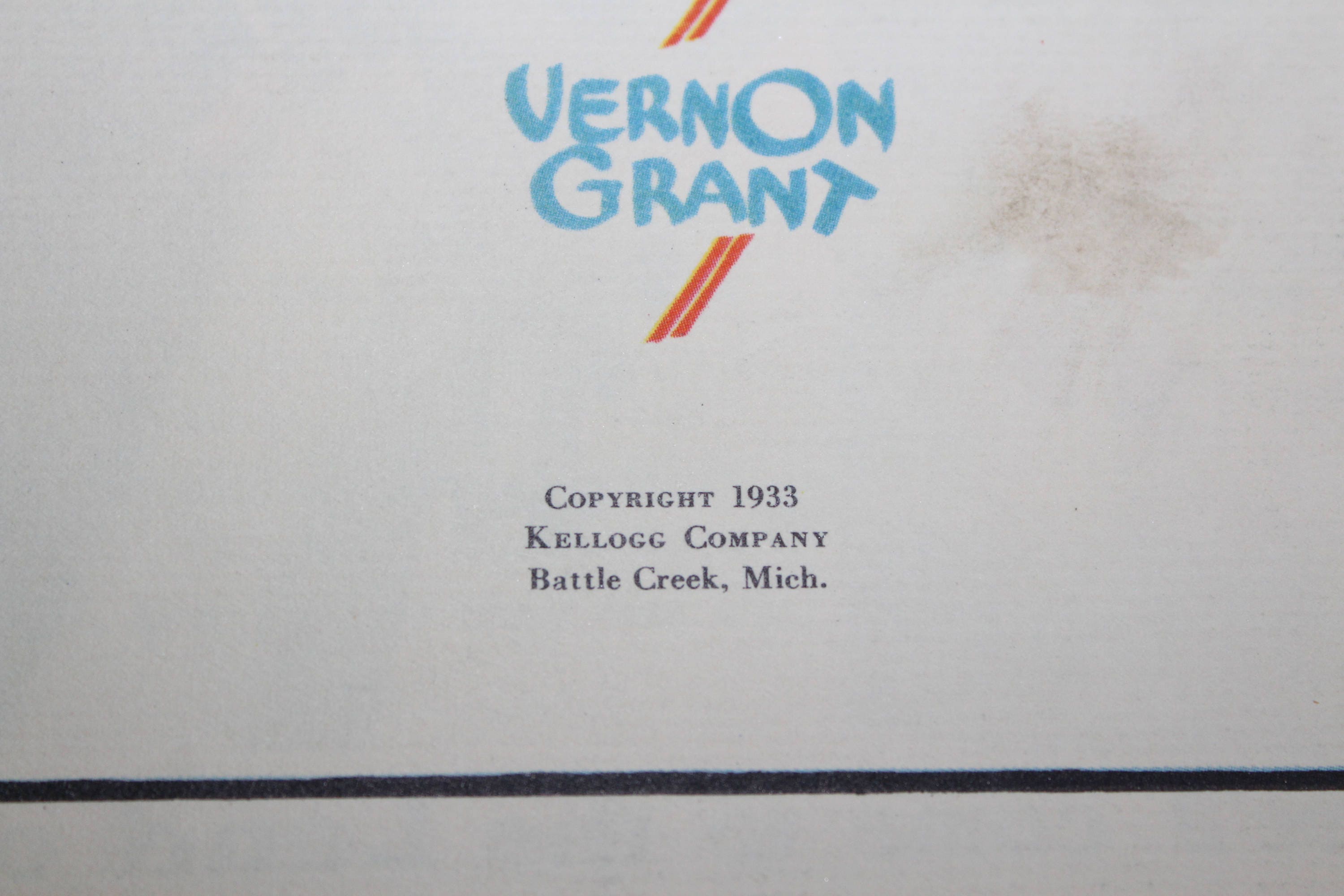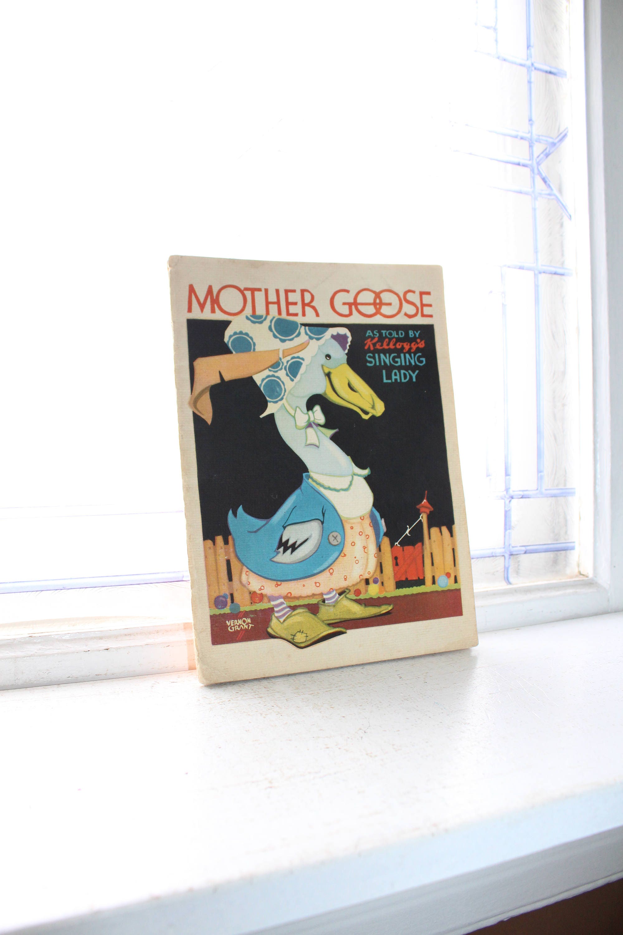 Vintage 1933 children's book, Mother Goose, as told by Kellogg's Singing Lady, in fairly good condition. It has a wonderful cover and is great for display. Spine has been restitched. This book measures 9" x 6 1/2". Nice advertising book from Kellogg's cereals. Enjoy!