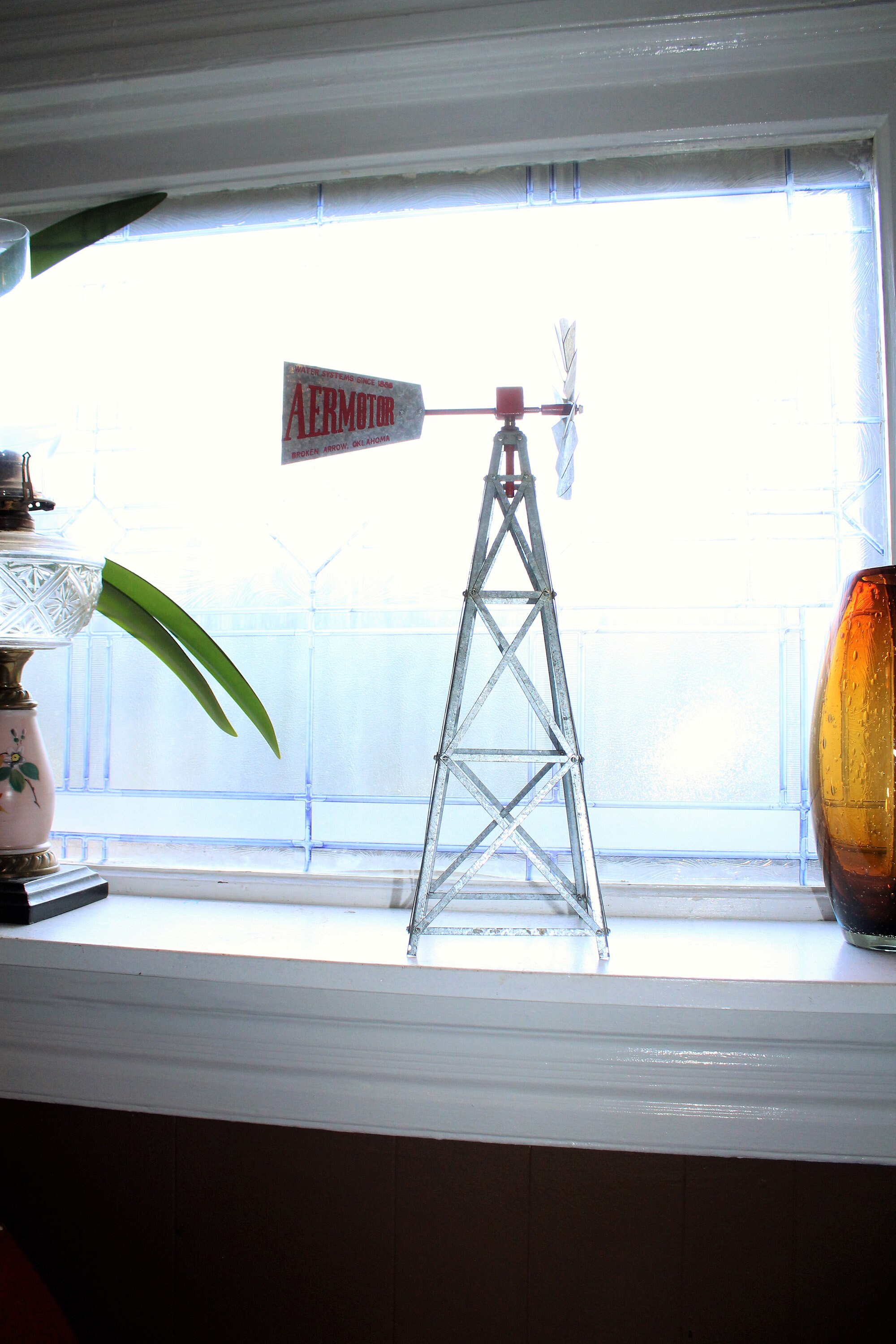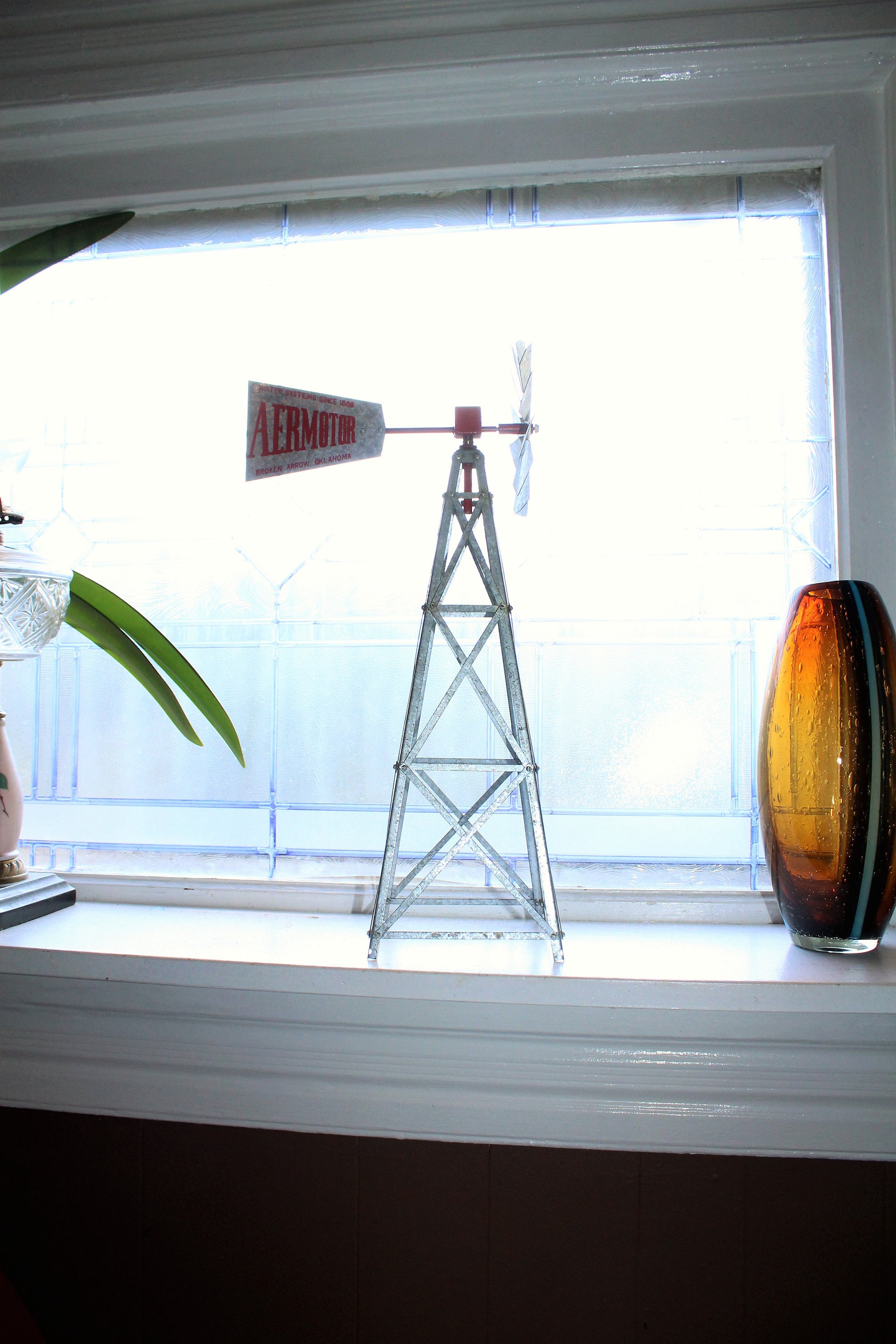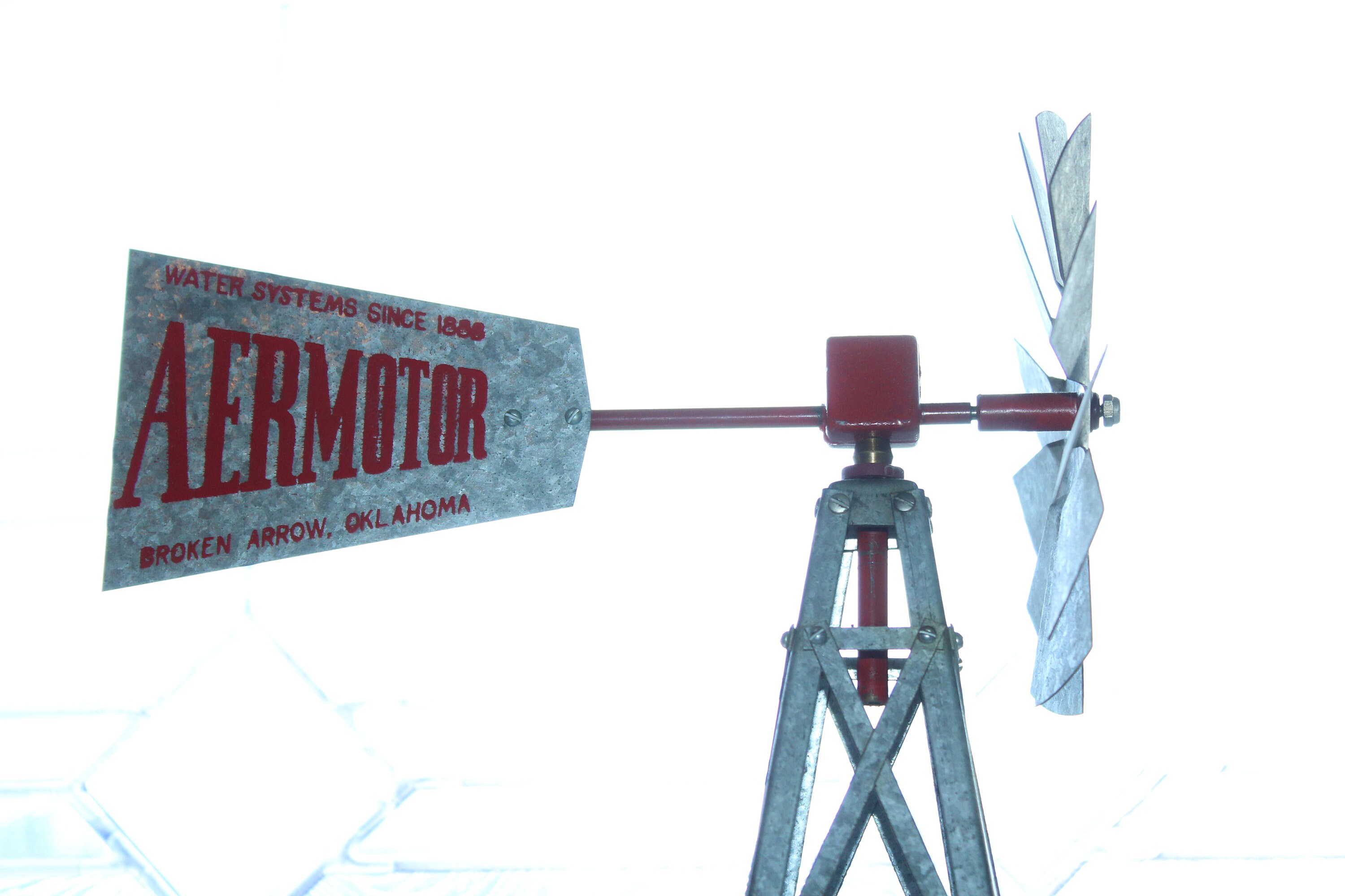 Vintage metal salesman's sample Aermotor windmill, in excellent condition and perfect for display in a country home. It measures 17" high. It has little to no wear and displays very well. Enjoy!