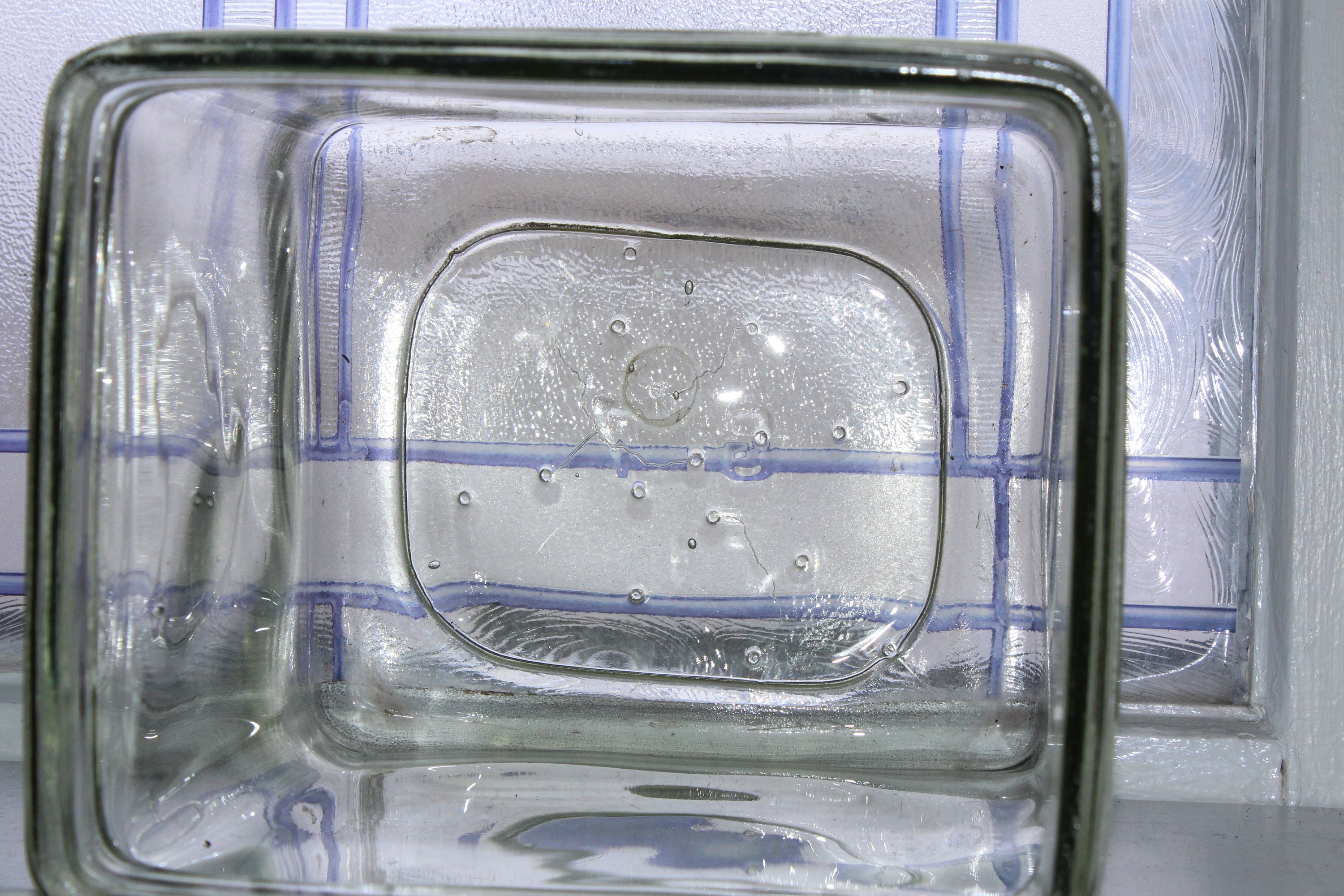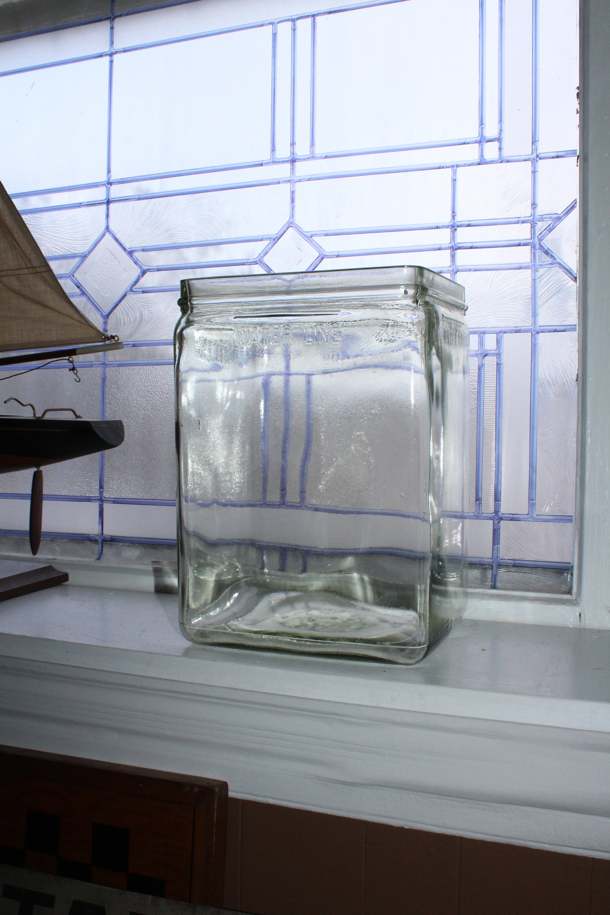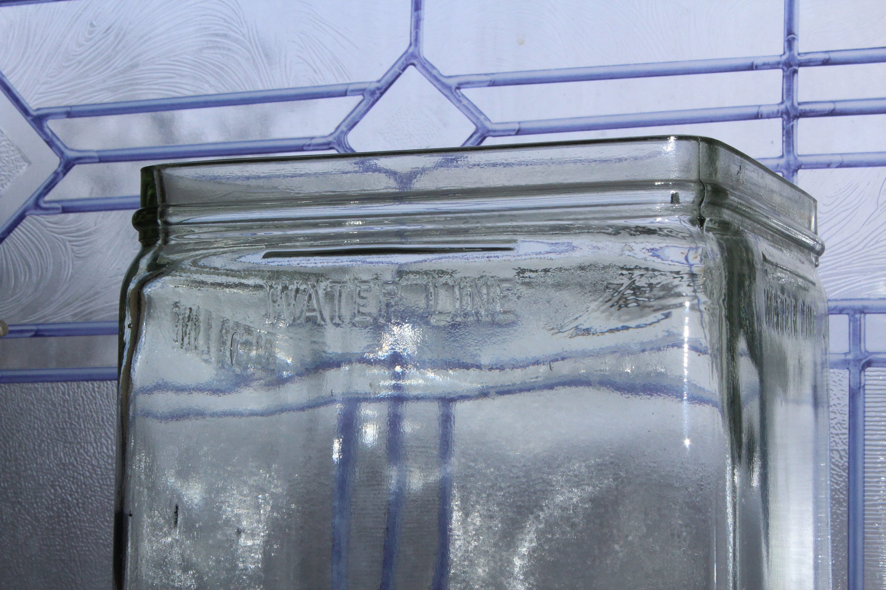 Antique clear glass battery jar, perfect as a large terrarium or vase, in good condition. It is marked Water Line on all 4 sides and G 7 on the bottom. It measures 10 1/2" high x 7 1/2" wide x 6 1/2" deep and weighs 6 lbs. No chips or cracks, perfect for use and display. Enjoy!