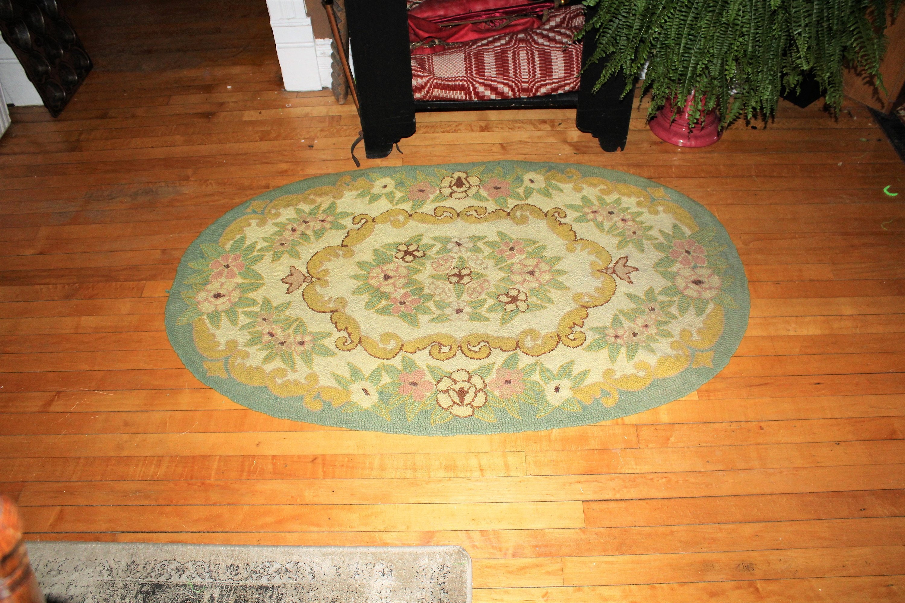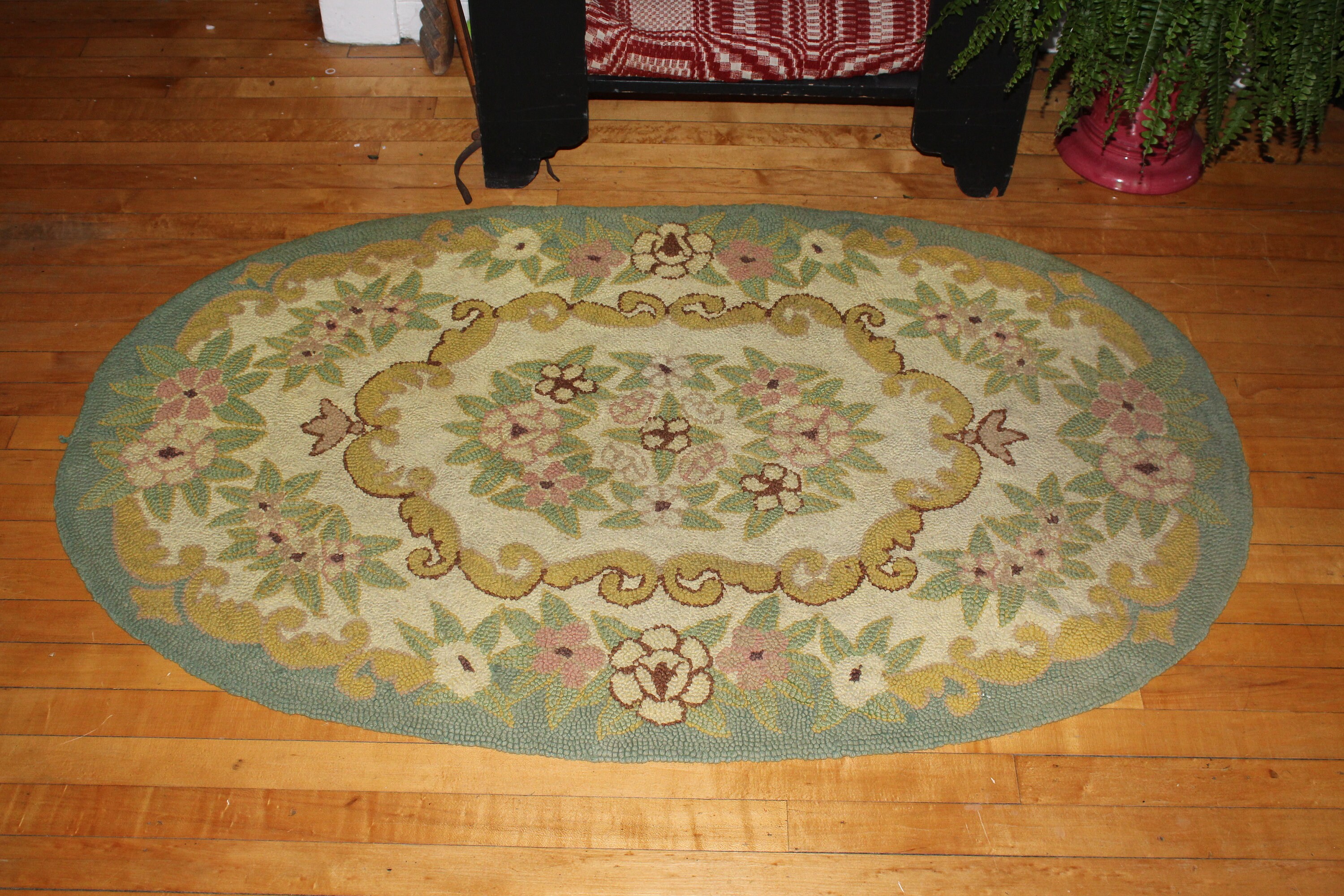 Large vintage wool hooked rug, perfect for a country home. The rug measures 57" x 35" and displays well. It comes from a farm estate in the Red River Valley of eastern North Dakota. I have not tried to clean it. Enjoy!