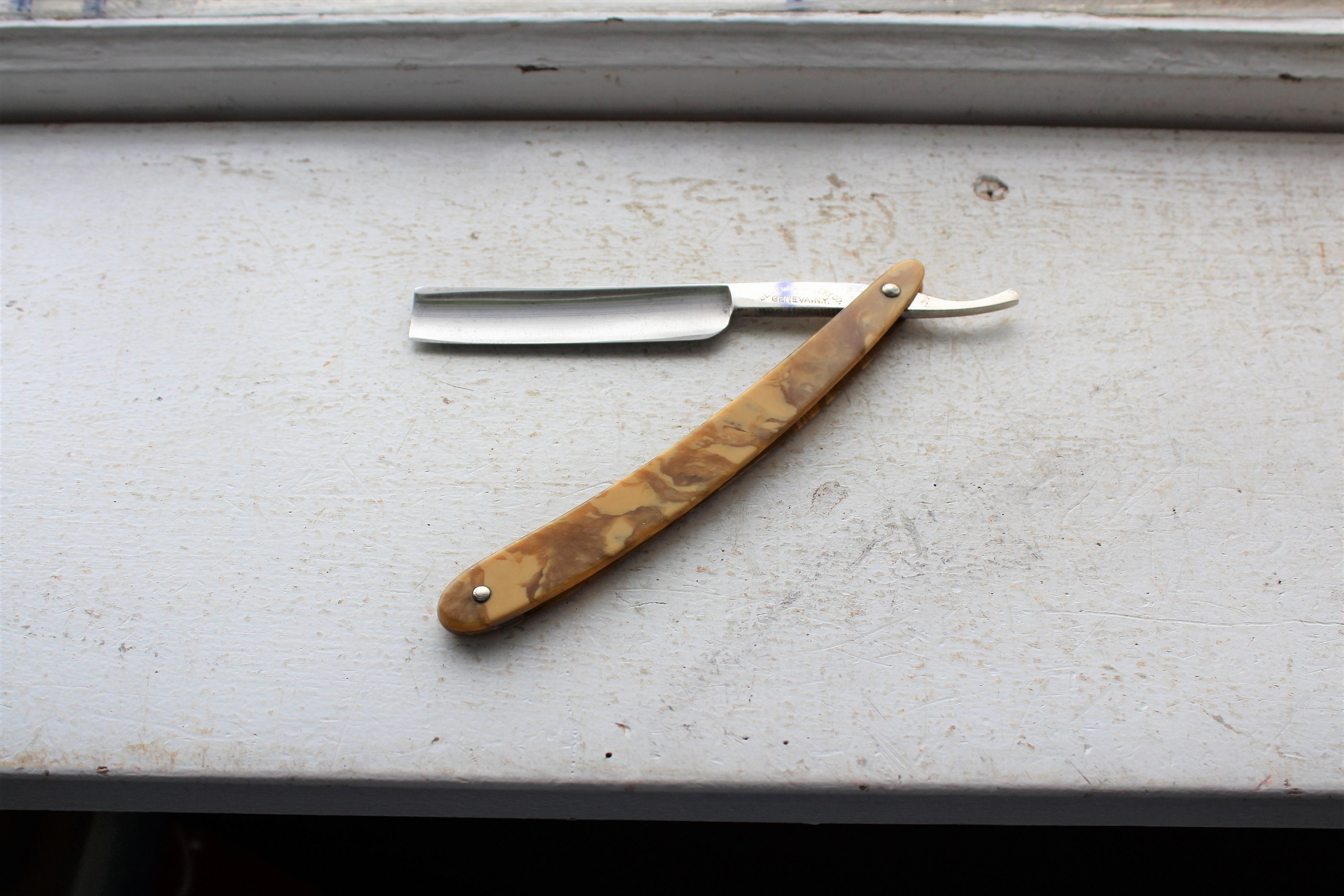 Antique straight razor made by the Geneva Cutlery Co, in excellent condition. No damage, just needs a minor cleaning and sharpening to be usable. Enjoy!