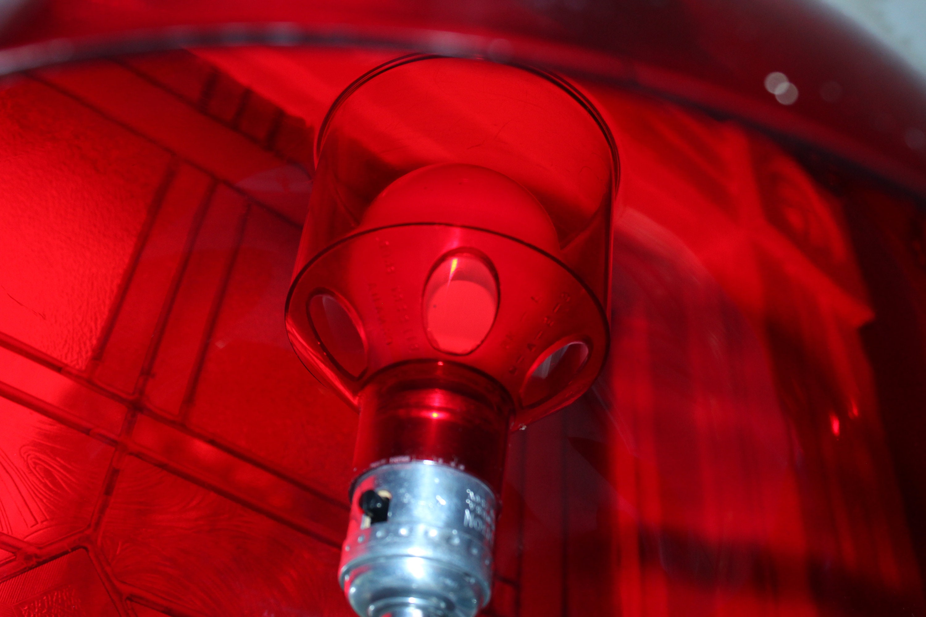 Vintage 1970s red and white Gilbert Softlite mushroom lamp, in excellent condition. It measures 17" high and works well. No damage, ready to use and display. Enjoy!