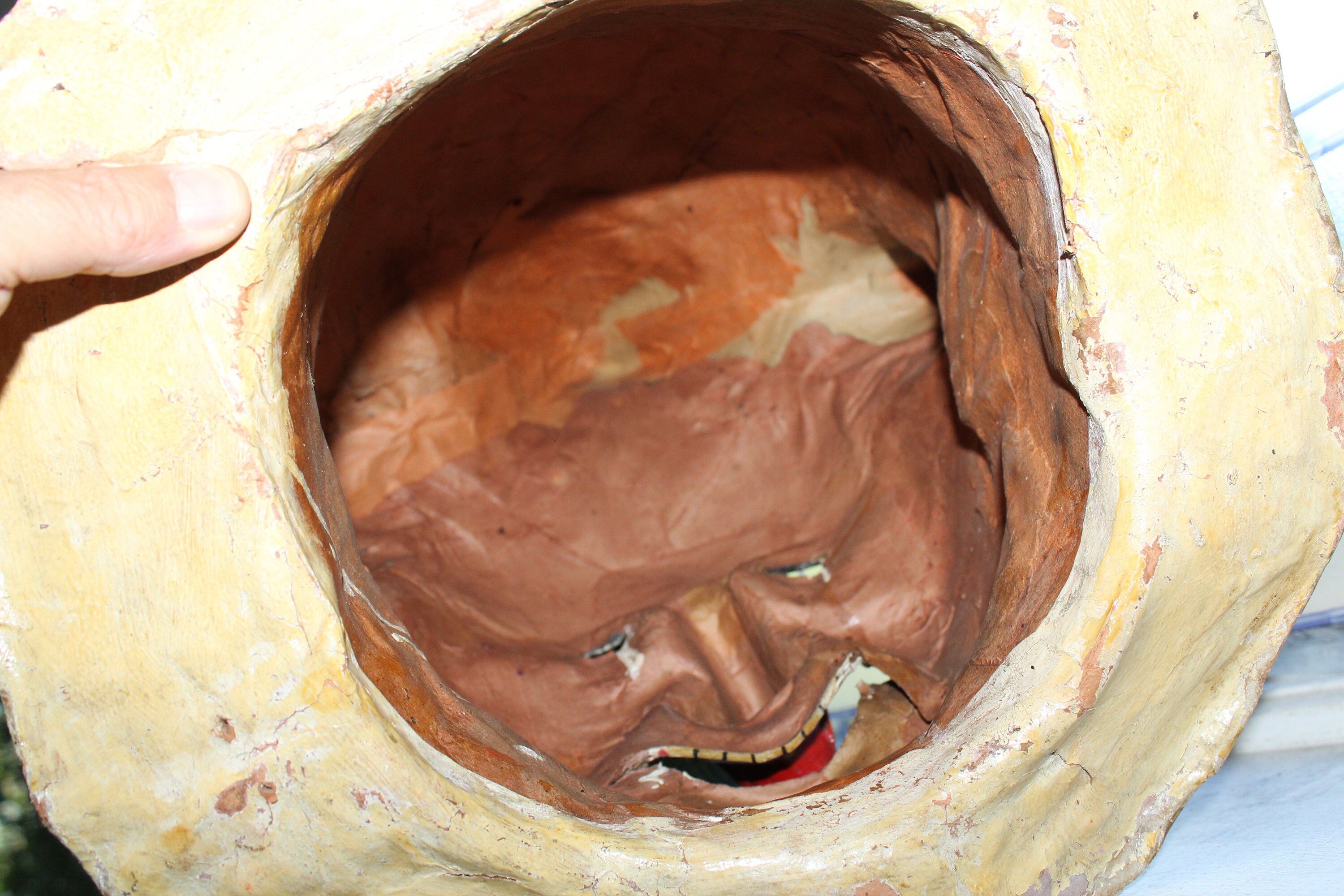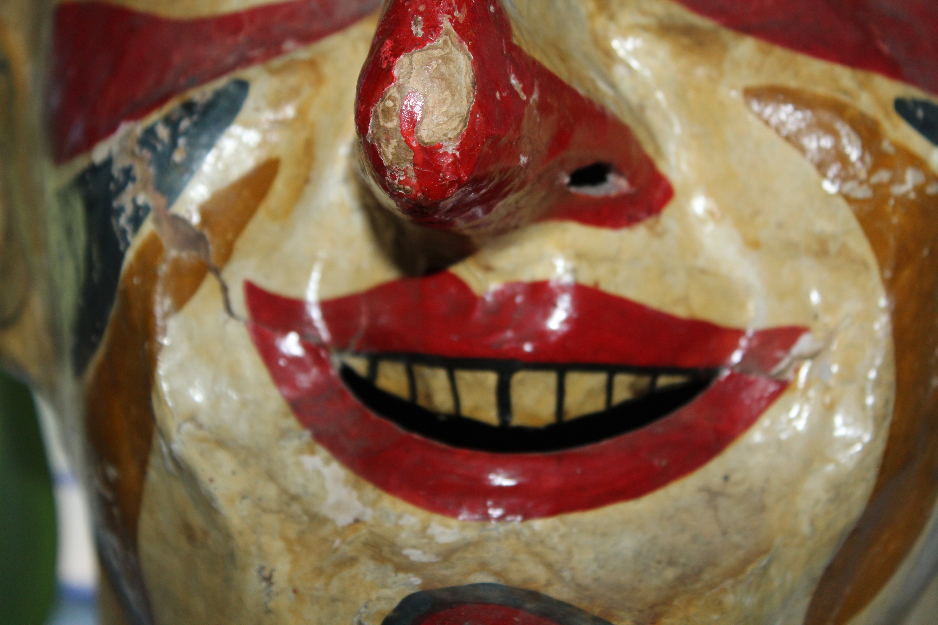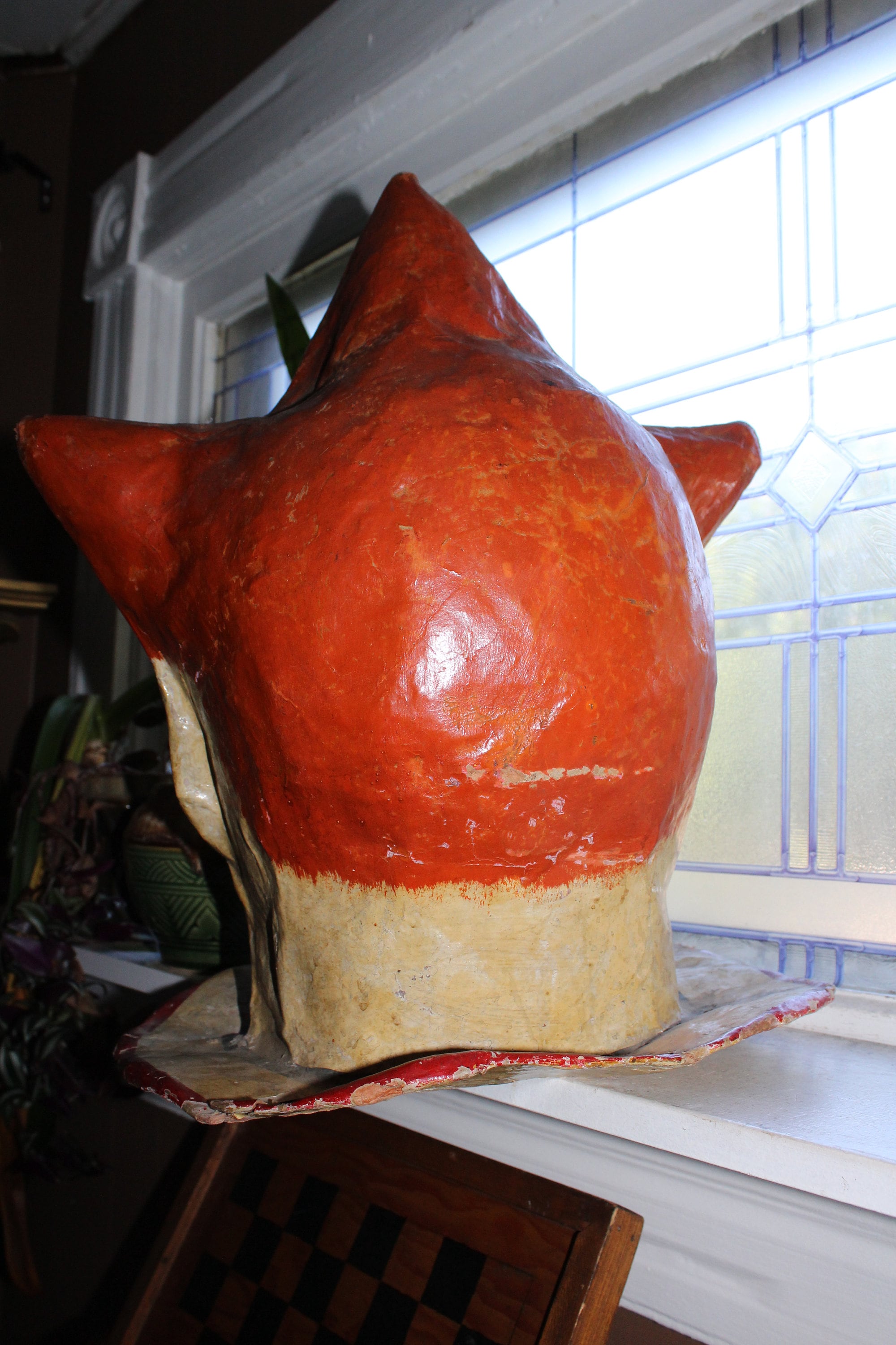 Antique early 1900s Mardi Gras paper mache clown/jester head mask, certain to creep out your friends and family! It measures 19" high and is wonderful for use or display. There is some age appropriate wear and damage as seen in the photos, but it still displays very well. Enjoy!