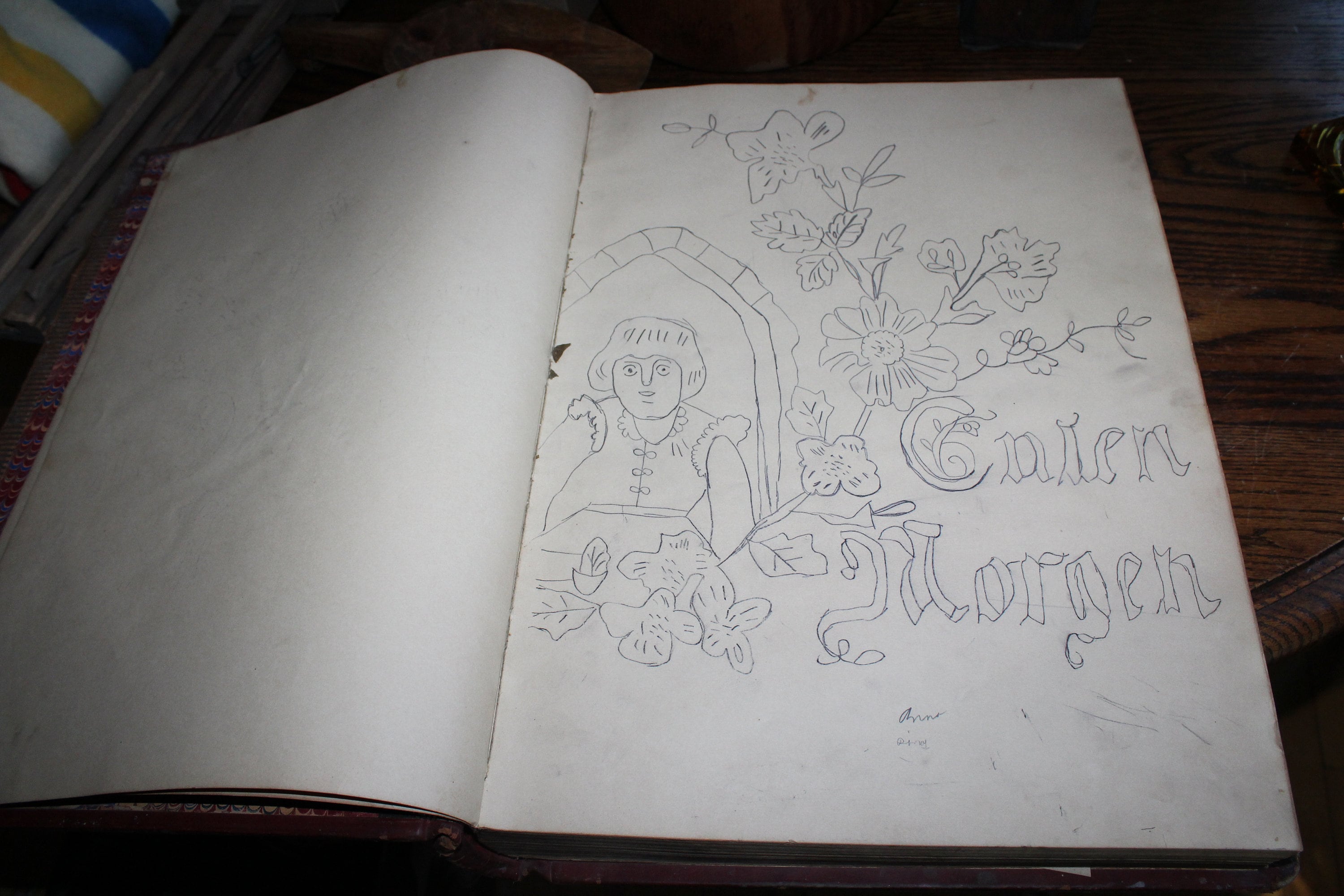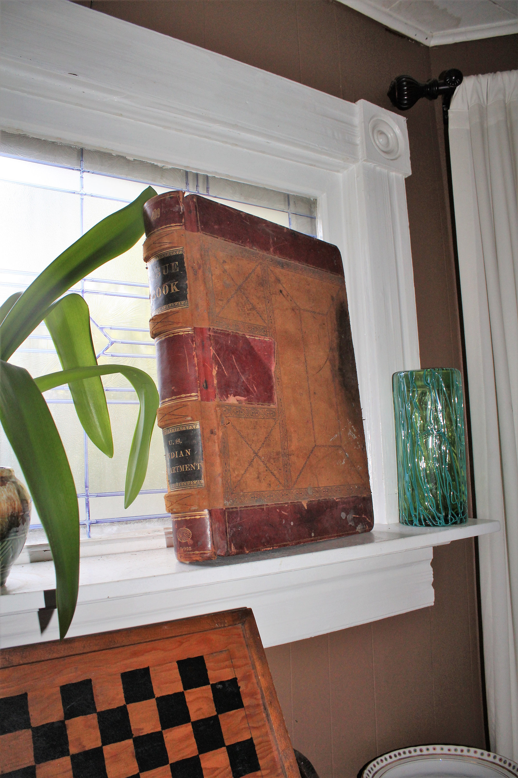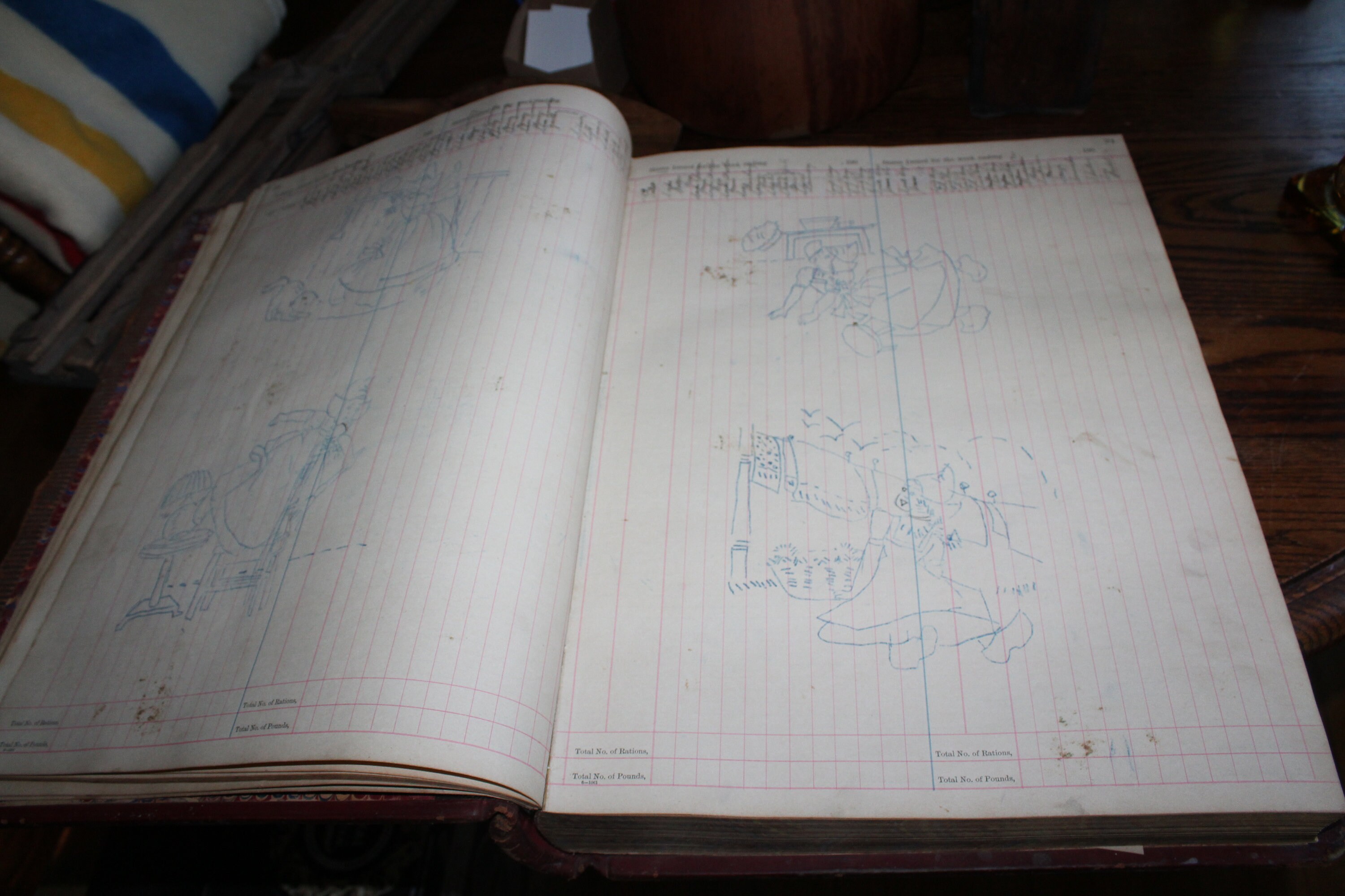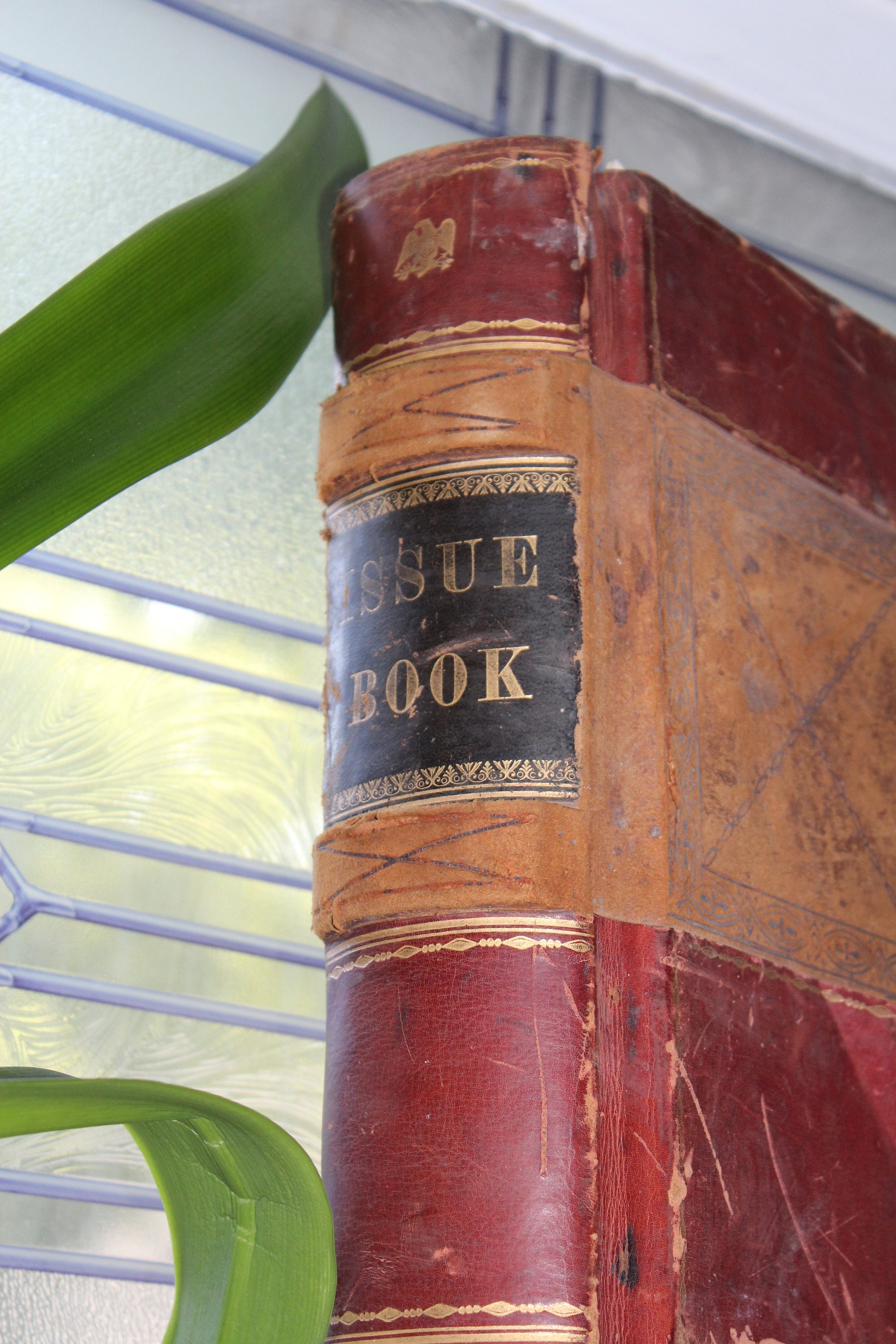 Here we have an interesting large ledger book. It's an issue book for the U.S. Indian Department, meant to keep track of supplies issued to Native Americans. This huge leather bound book measures 19 3/4" x 16" and weighs 23 lbs. It shows age appropriate wear and tear, and the first several pages were used to draw embroidery patterns back in the 1920s, but it displays very well. To be clear, the majority of the pages are blank. Enjoy!