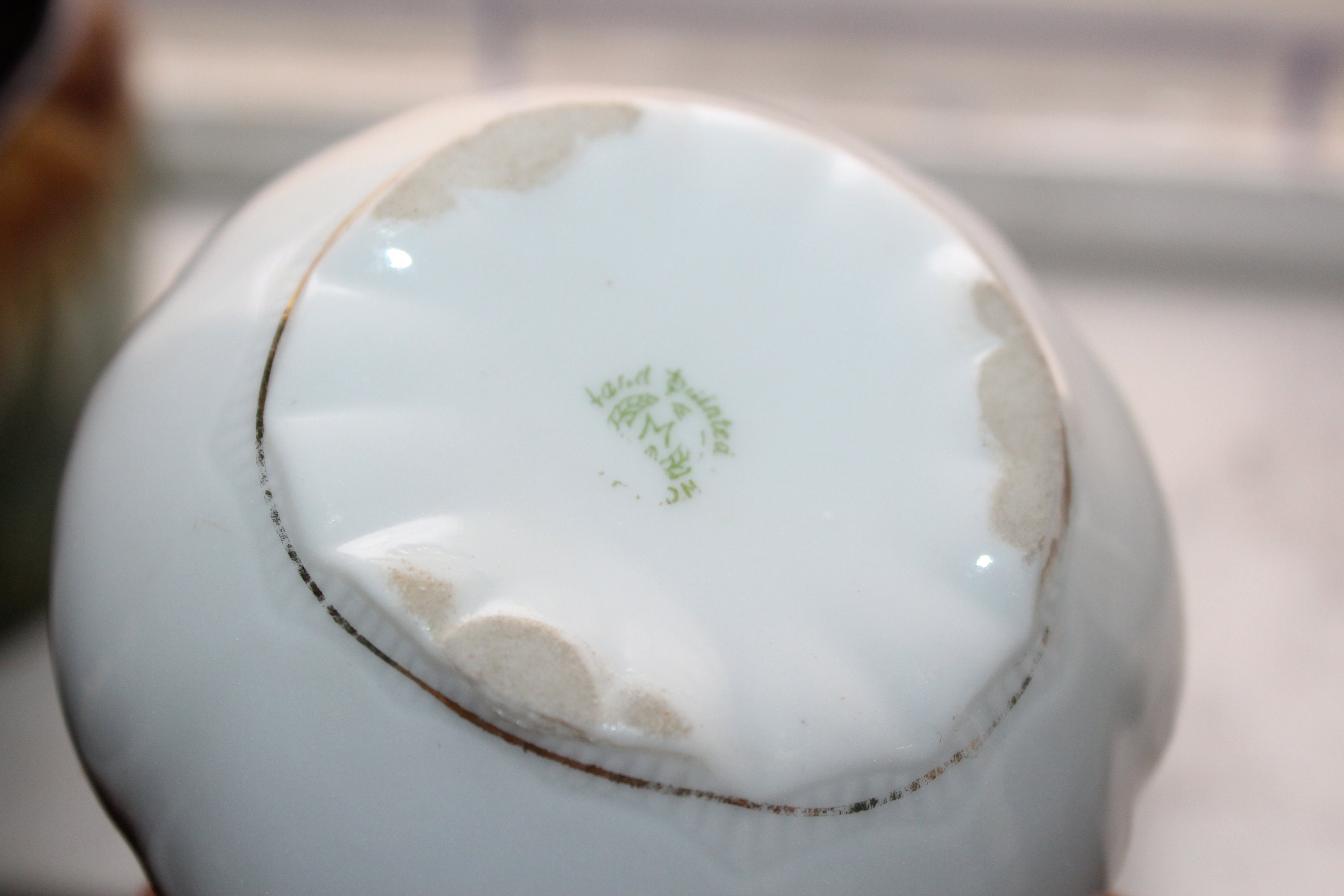 Antique hand painted Nippon porcelain trinket or jewelry box featuring delicate pink roses and gold trim on white porcelain. The box measures 3 3/4" wide and 2 1/2" high, and is in excellent condition. Also makes a nice powder jar. Enjoy!