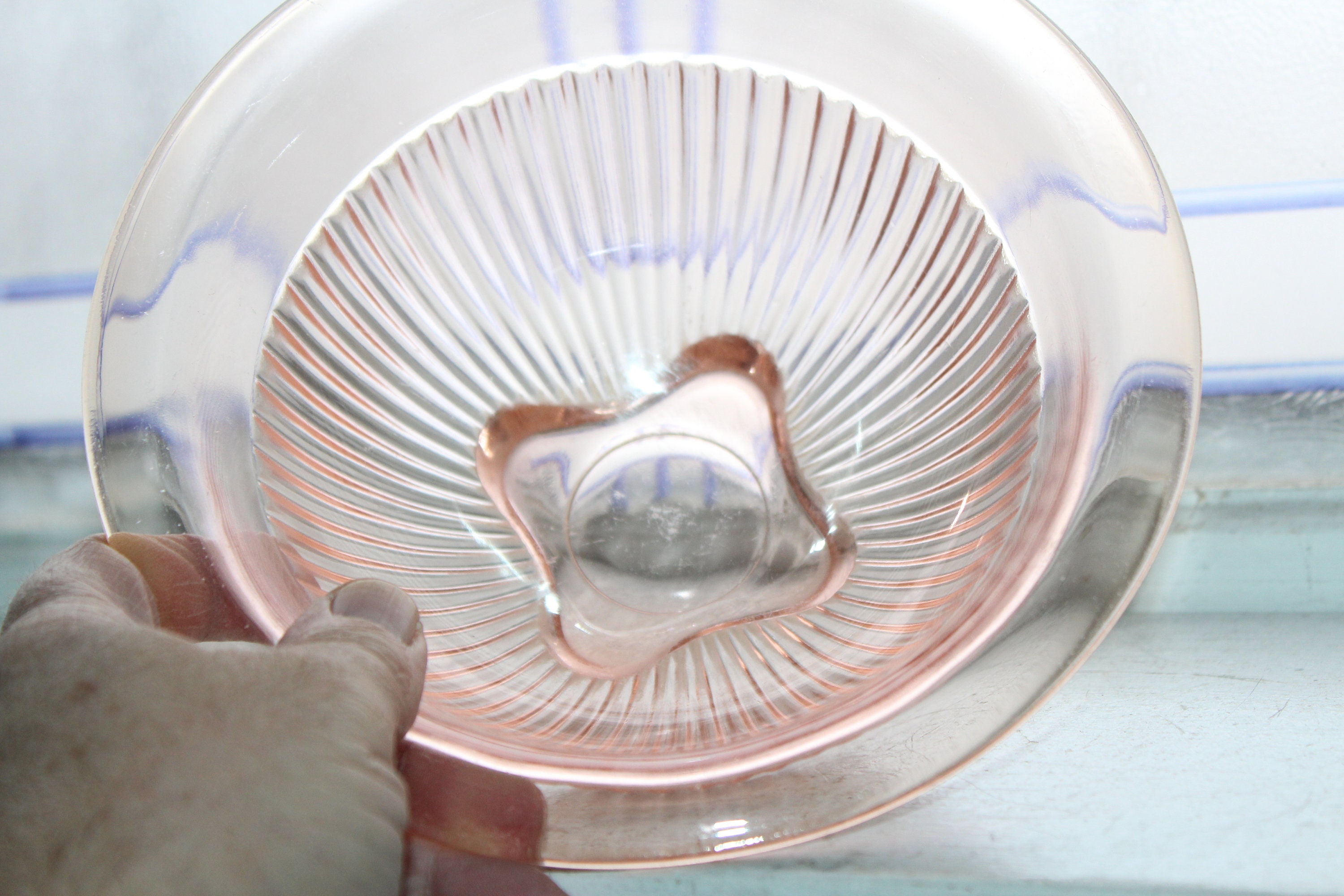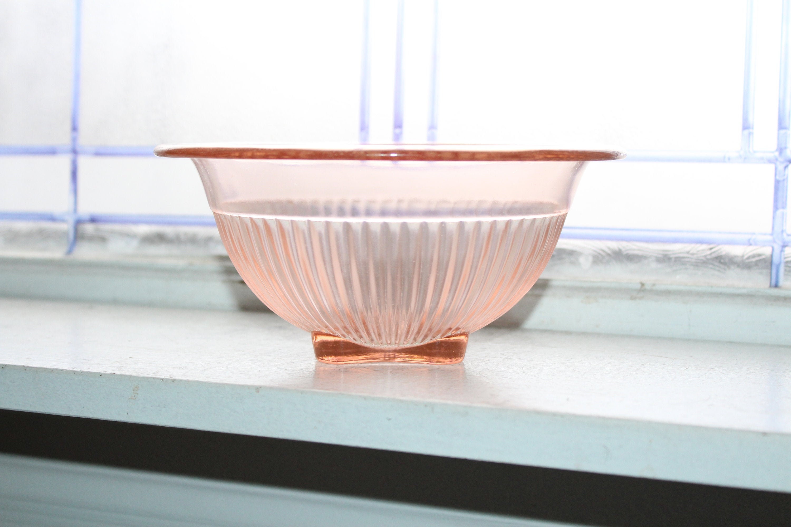 Vintage 1930s pink depression glass ribbed mixing bowl. The bowl measures 7 1/2" in diameter and 3 1/2" high. The bowl is in very good condition with age appropriate minor use wear to the inside, perfect for use or display. Enjoy!