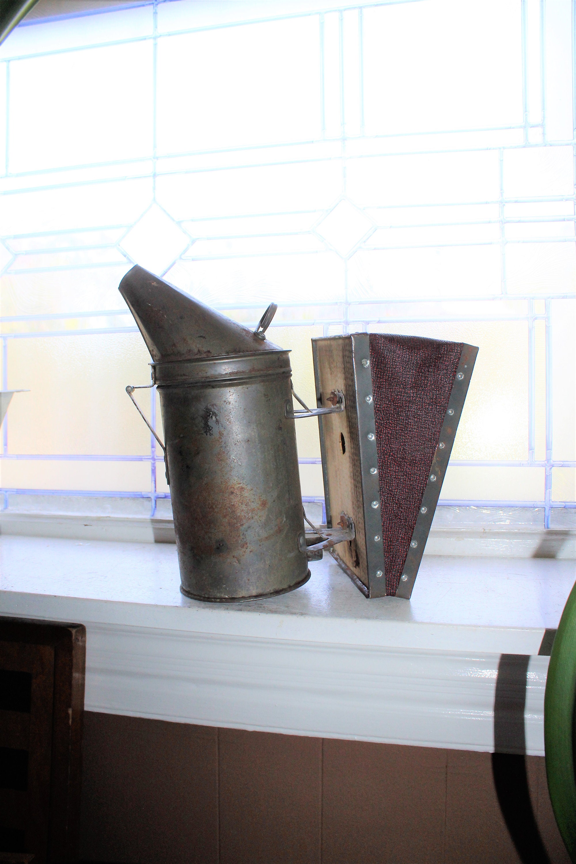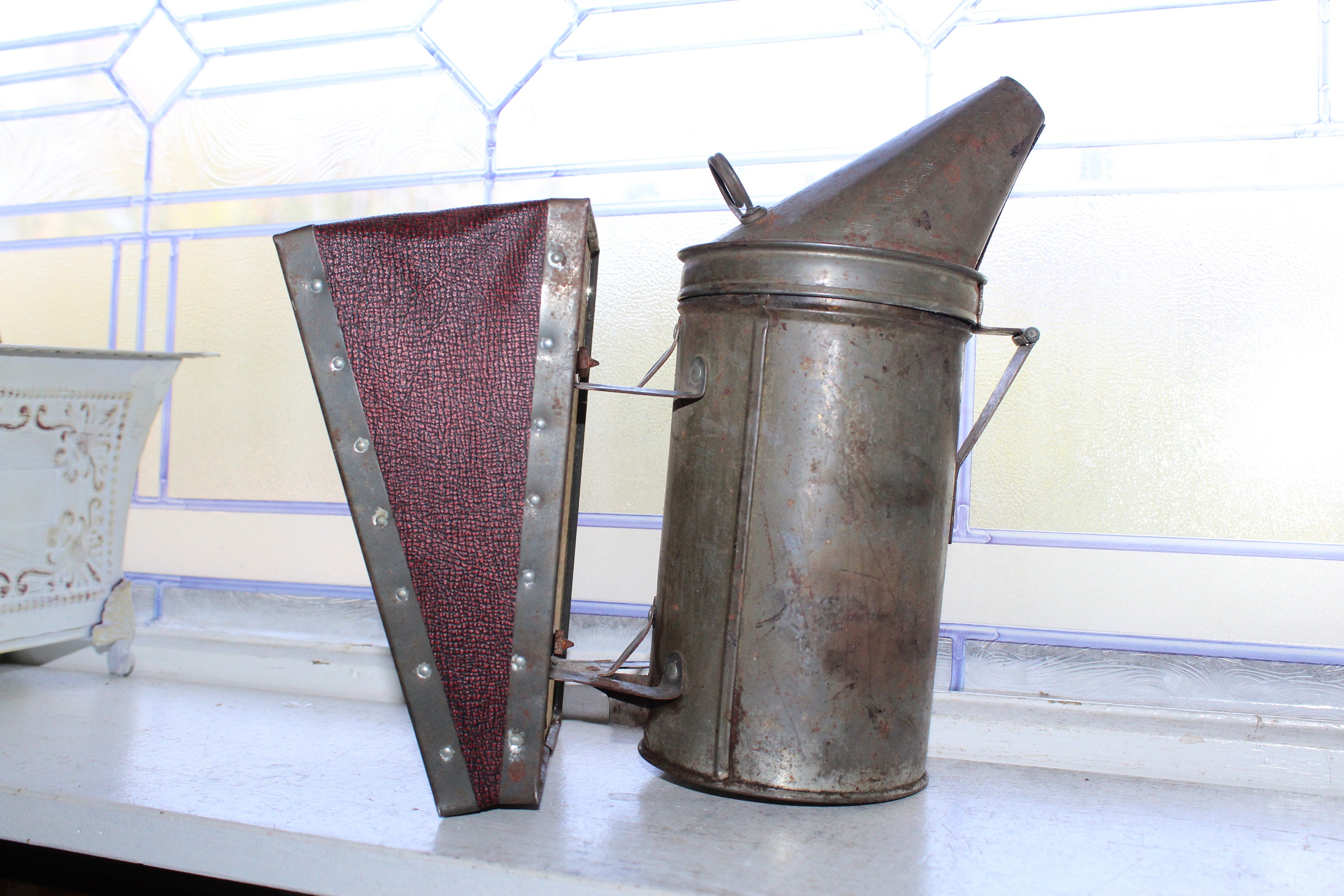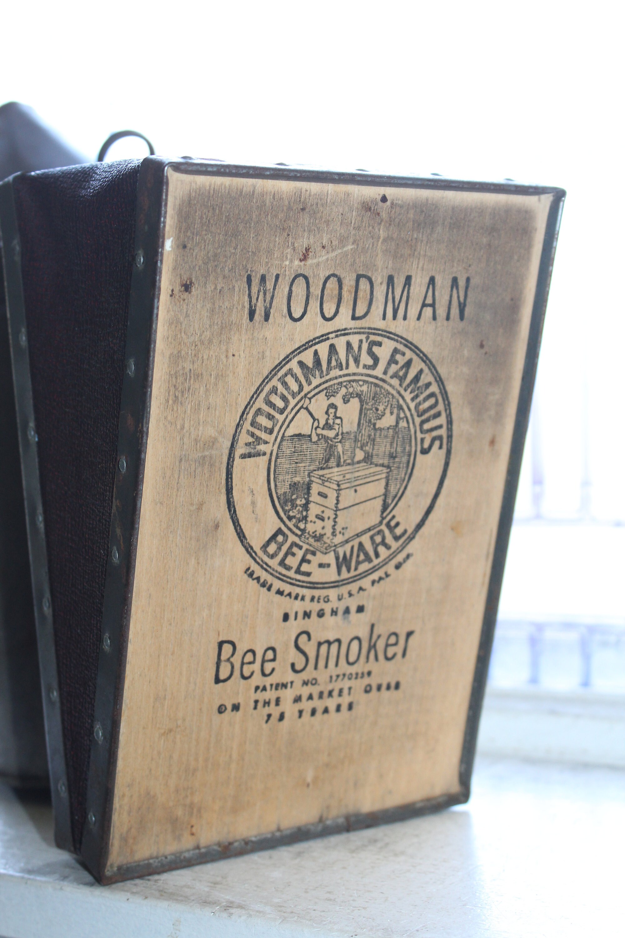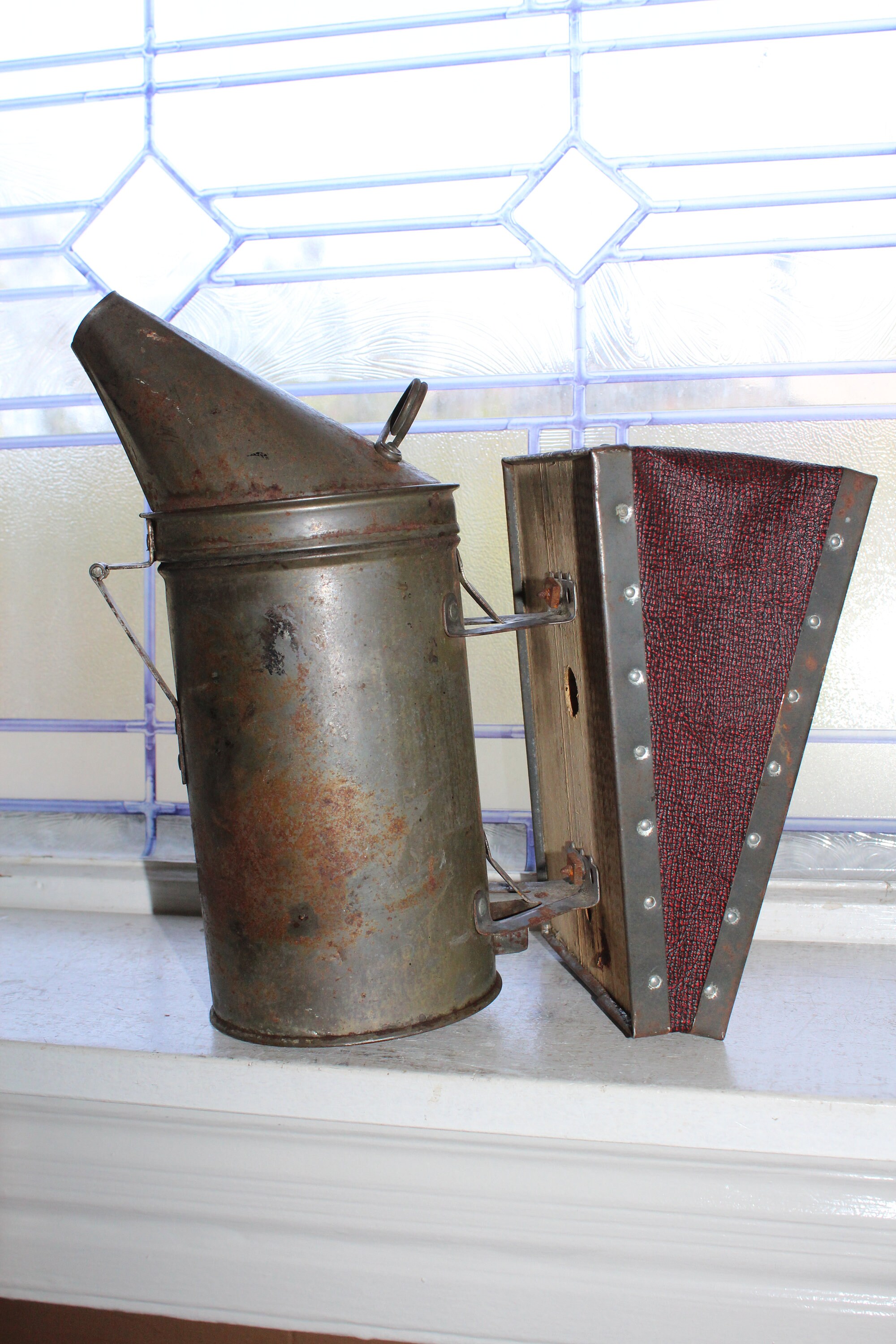 Vintage Woodman bee smoker with red leather bellows, in good working condition. I just love the look of these in a country collection! This one measures 10" high. No damage to the bellows, it works well. Enjoy!