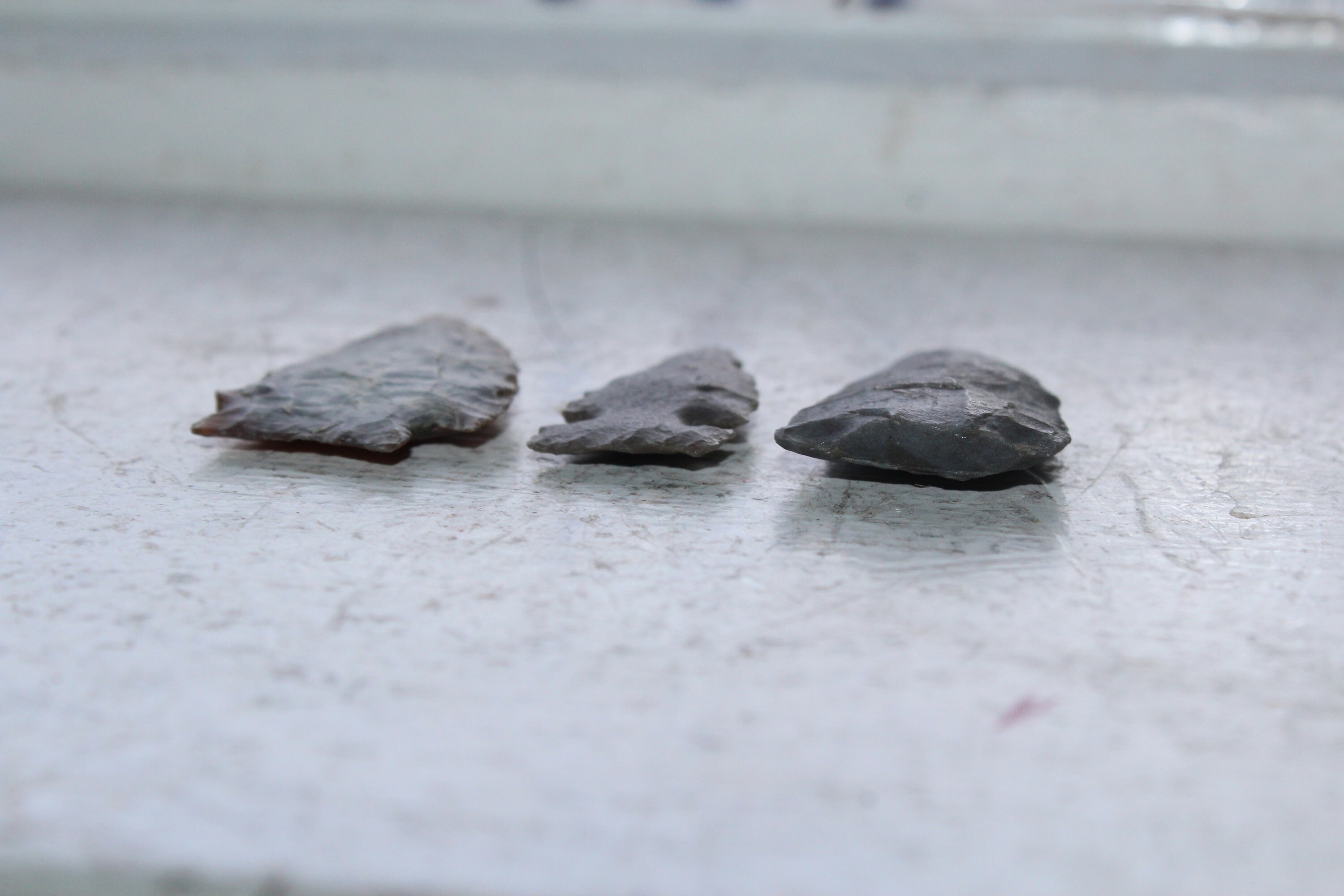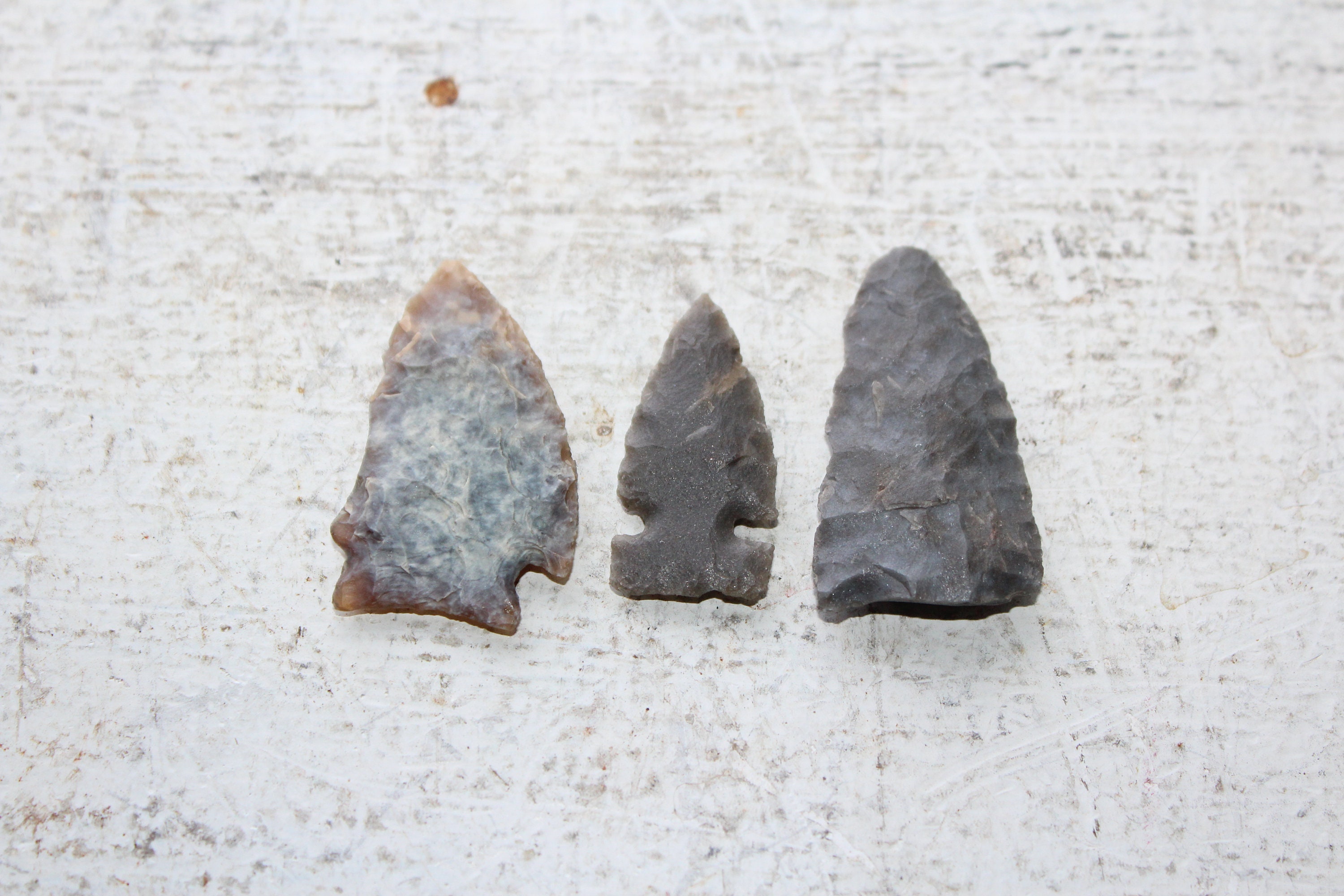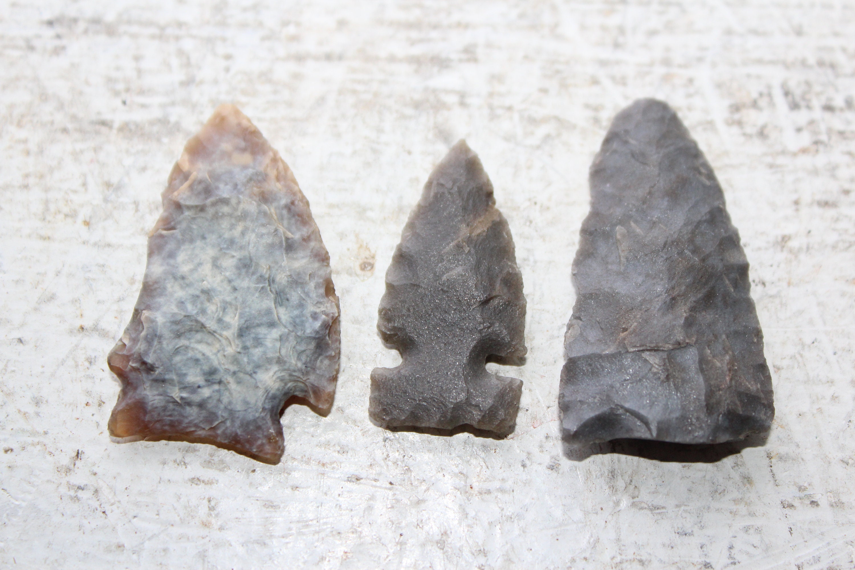 This is a collection of 3 antique Native American arrowheads, found by a now deceased elderly gentleman throughout North Dakota. They measure 1 1/2" to 1 1/4" long. Enjoy!