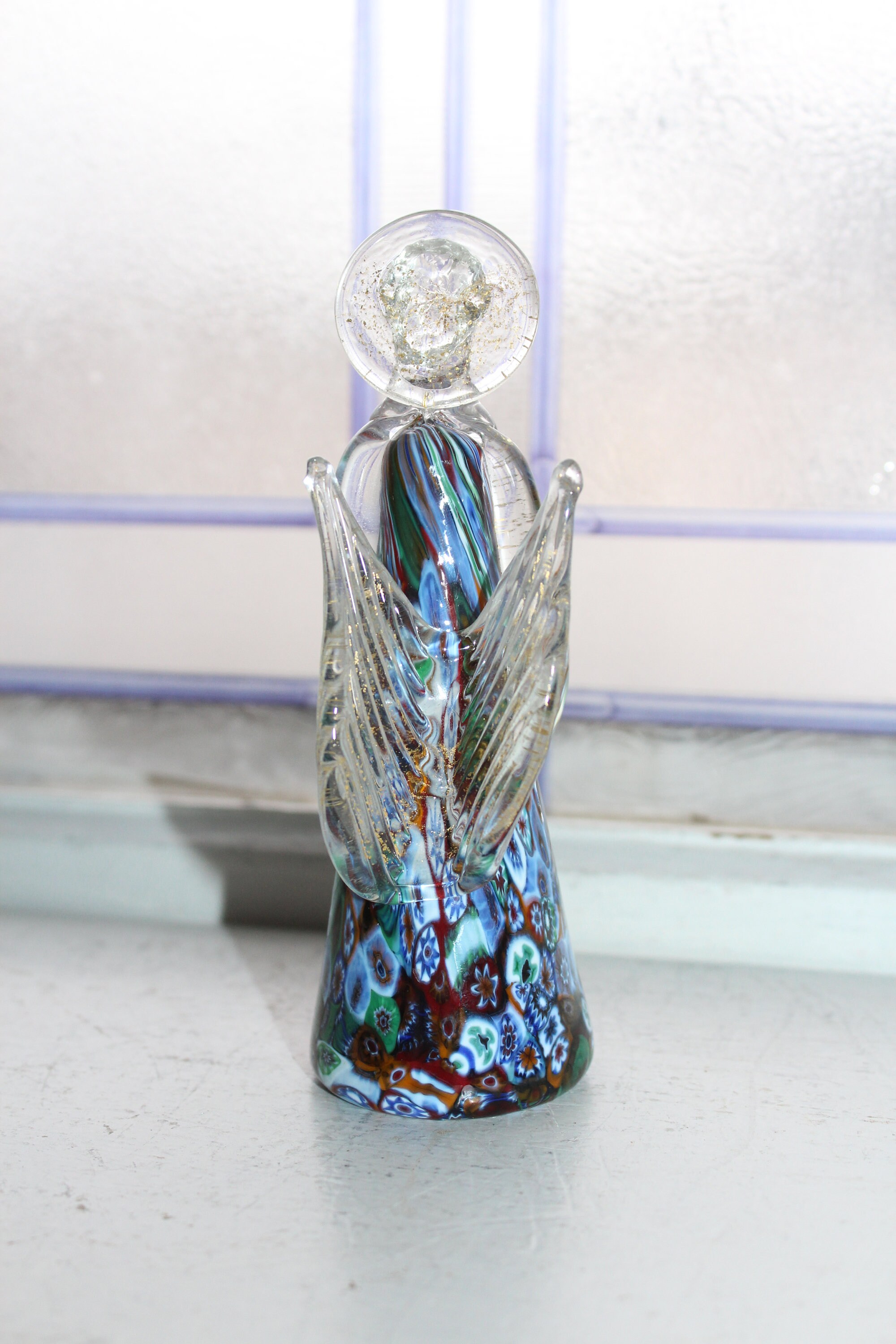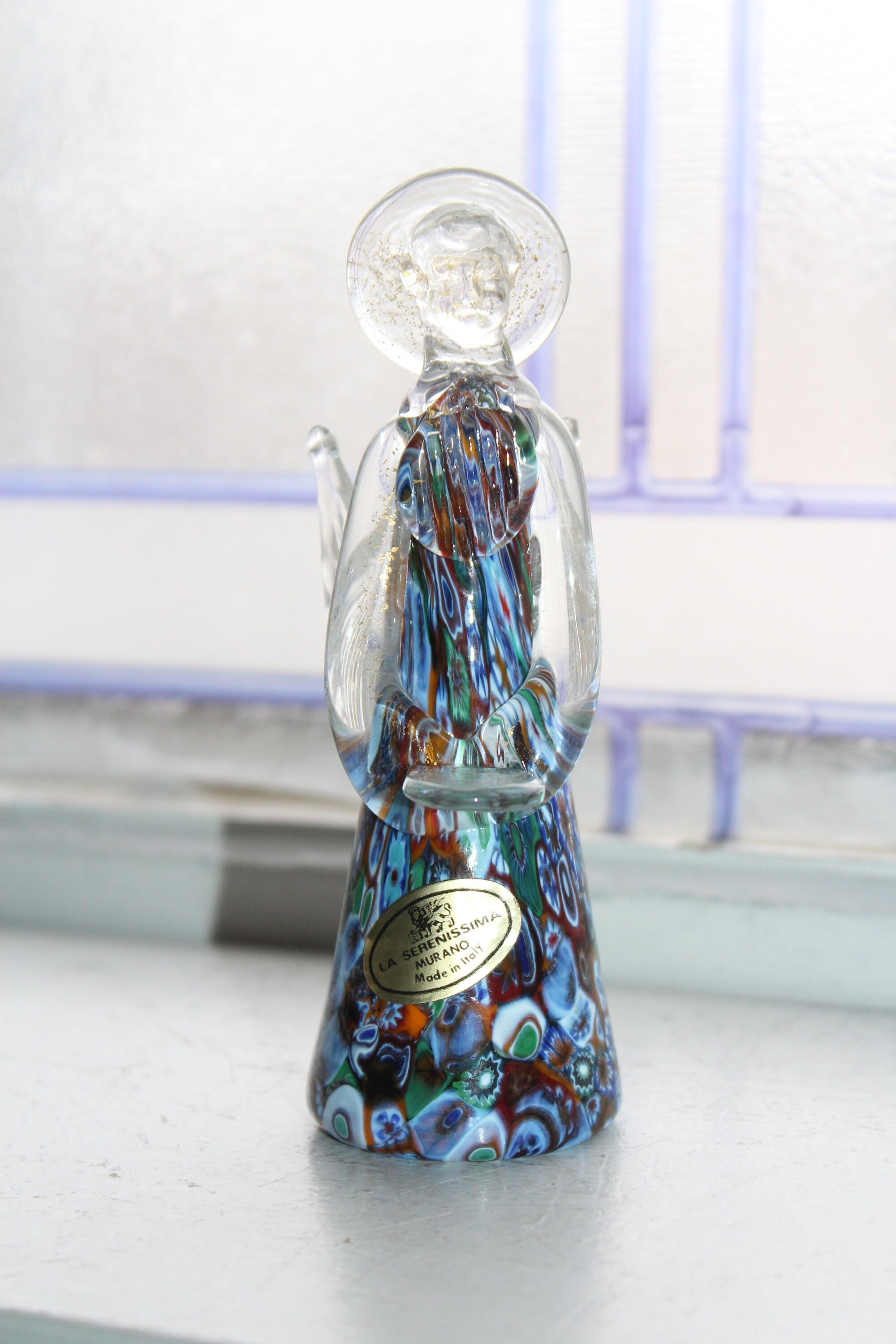 Vintage Murano La Serenissima art glass millefiori angel figurine, in excellent condition. It measures 6 3/8" high and has no chips or cracks. Enjoy!