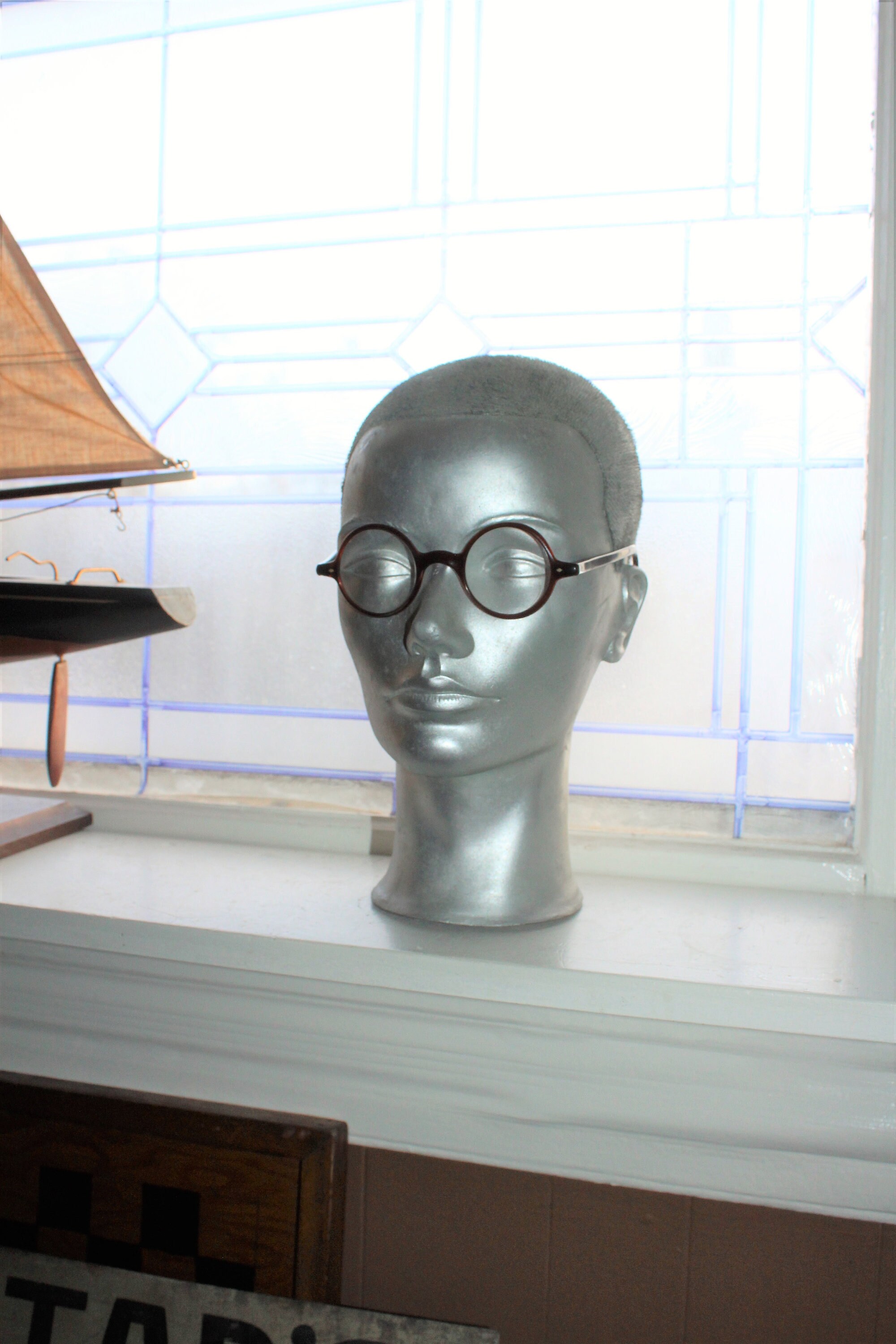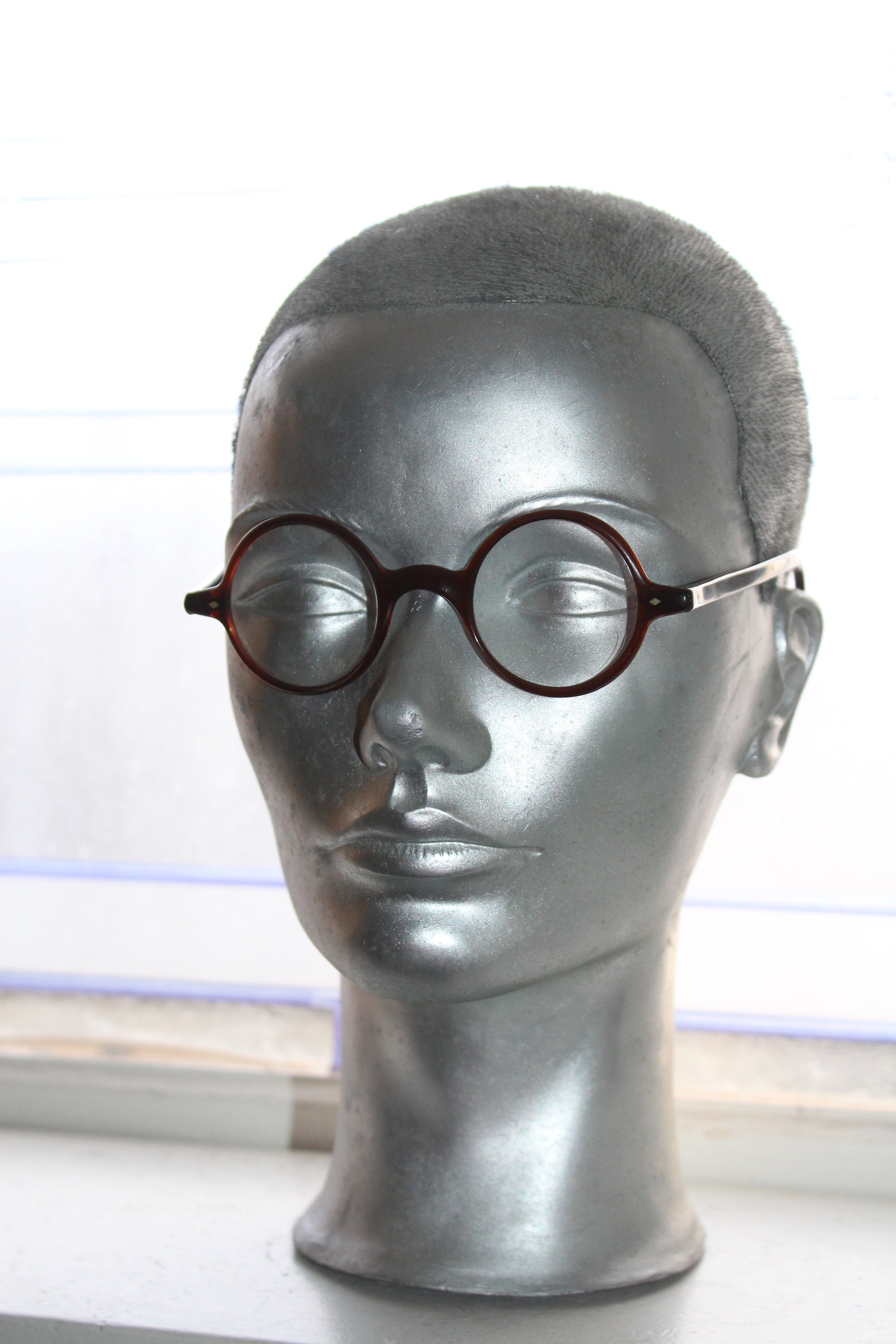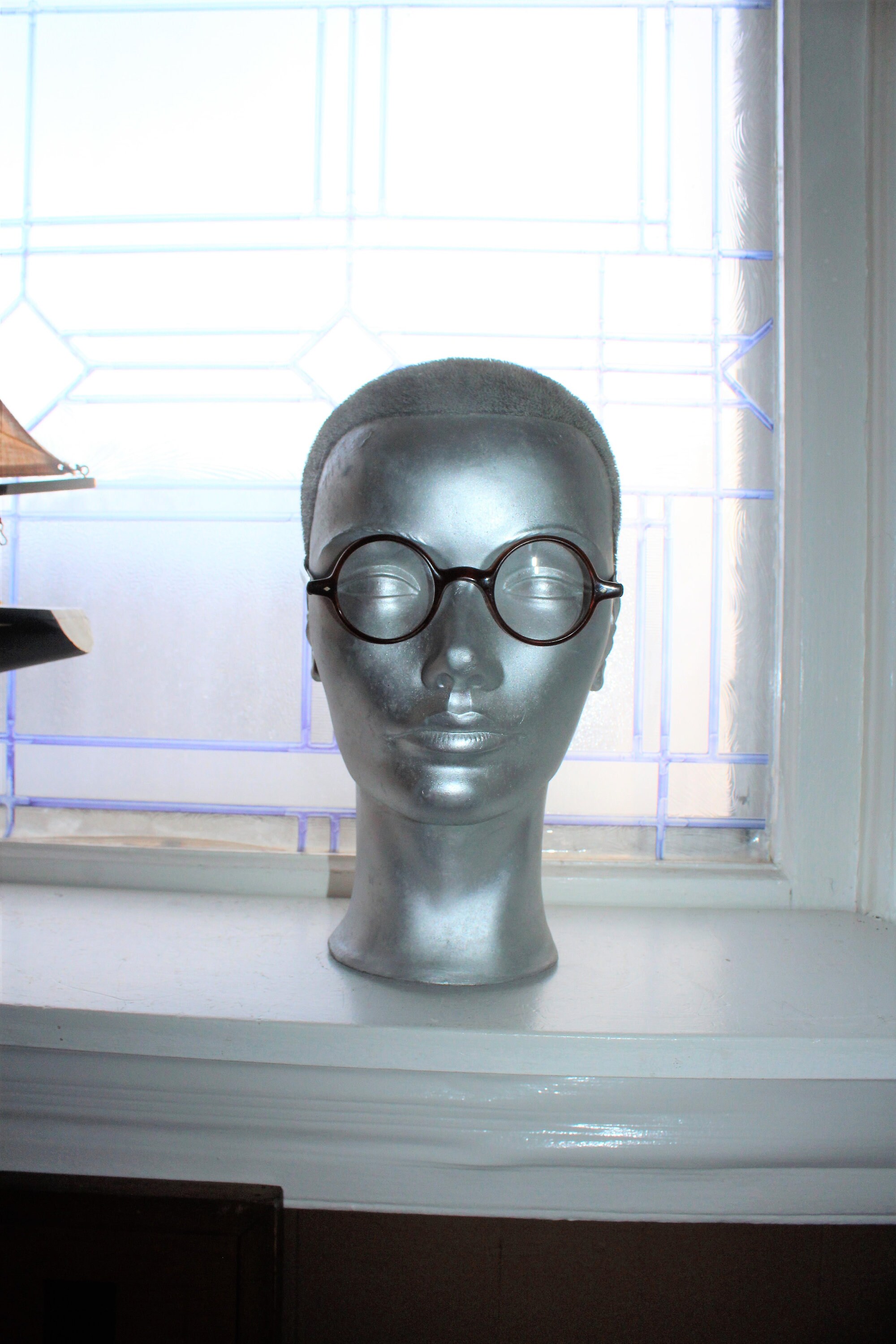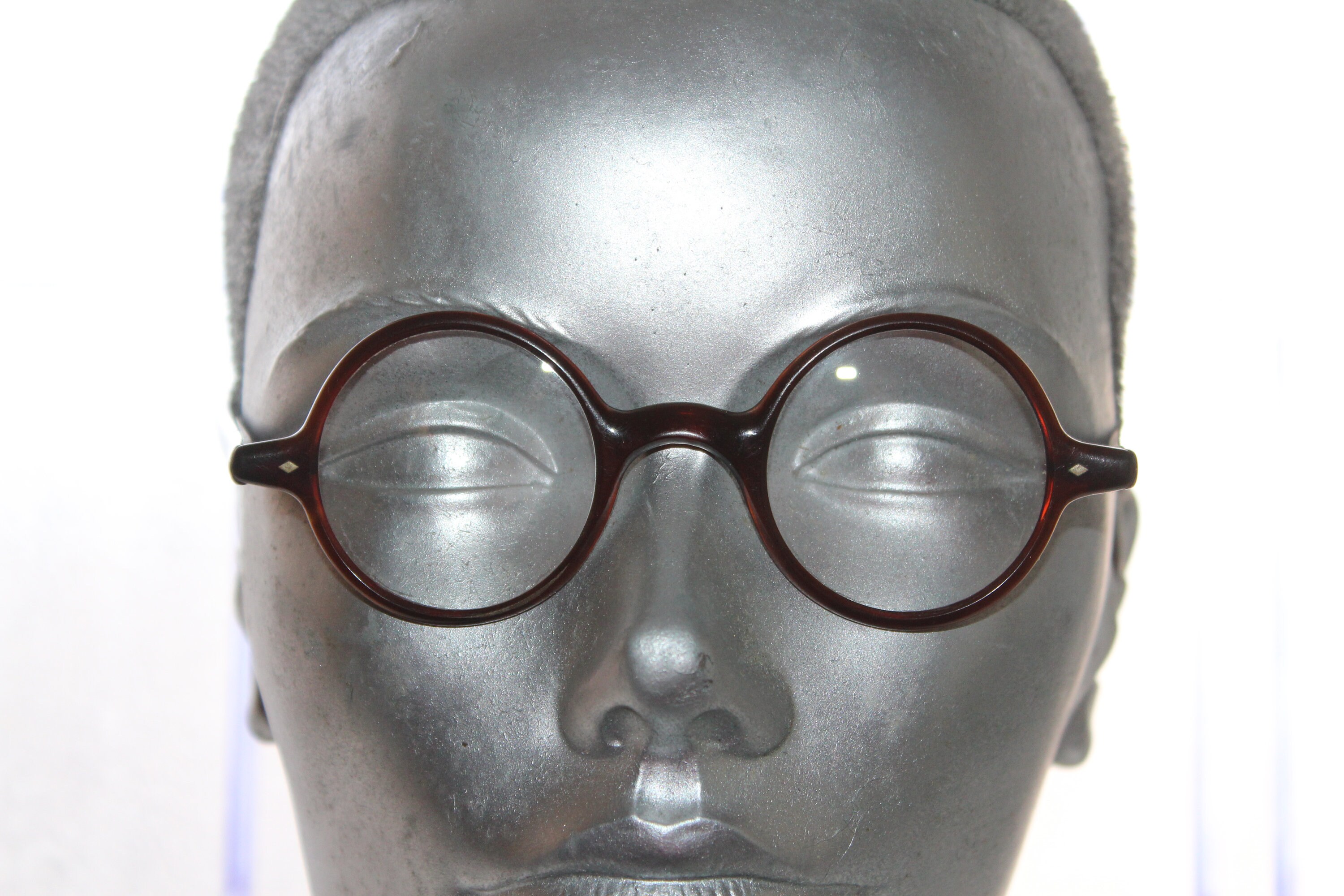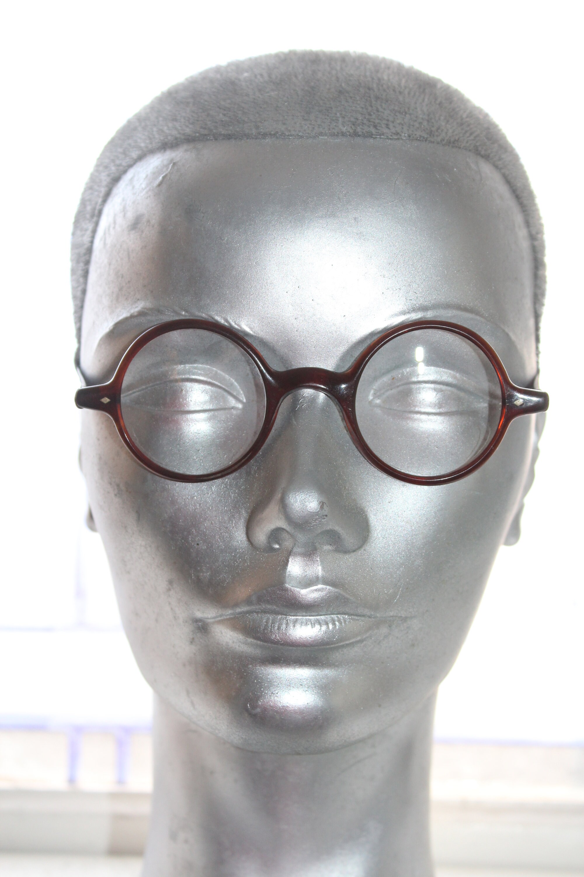 Vintage 1920s Harry Potter style eyeglasses featuring round brown rims. No damage, still perfect for use or display. They measure 4 7/8" across the front and 4 1/8" front to back. Each lens measures 1 1/2" wide. Enjoy!